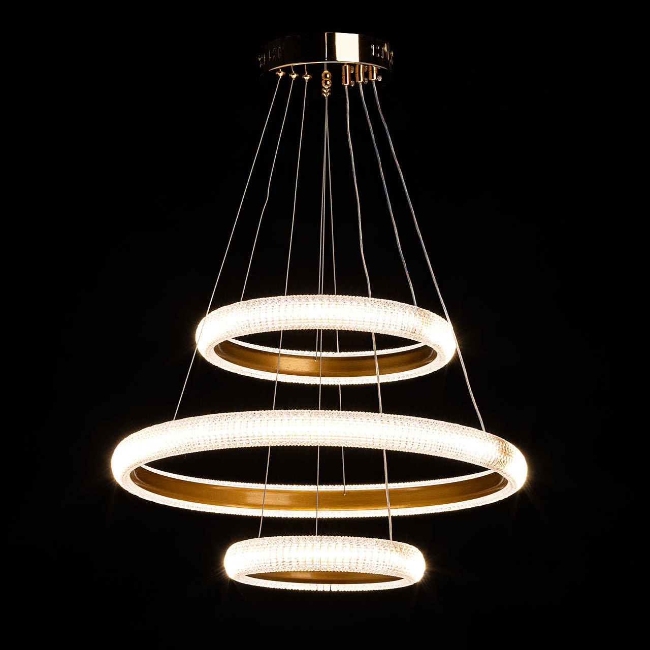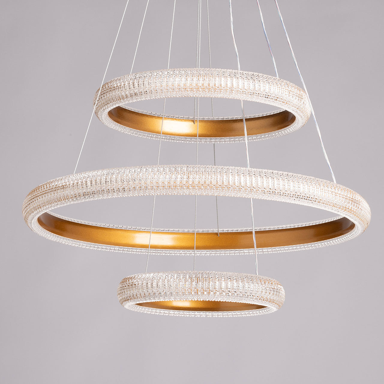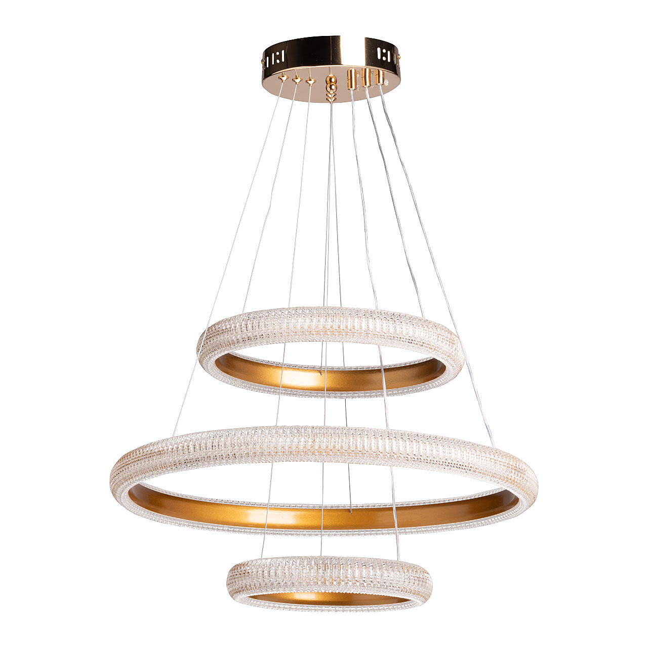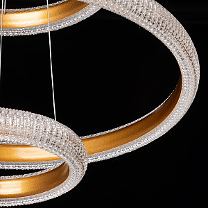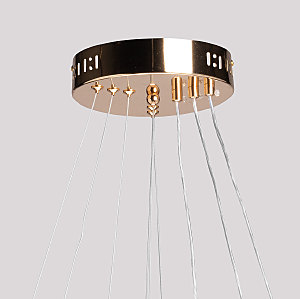 Акцентный плафон придает люстре уникальность, повышая ее привлекательность. Сочетание фактур глянцевого и матового золота придает люстре элегантности и стильности. Современный высокотехнологичный акрил эффектно преломляет свет, создавая игру бликов. Сочетание качественных материалов, оригинального дизайна и многофункциональности делает люстру превосходным выбором для, тех кто ценит стиль и эстетику в интерьере. Многорежимность освещения от 3000К до 6500К позволяет подобрать комфортную температуру света. Диммирование поможет выбрать необходимую интенсивность светового потока, а ПДУ обеспечит удобную эксплуатацию люстры. Светодиодные источники света экономичны и безопасны. Возможность устанавливать комфортную высоту.