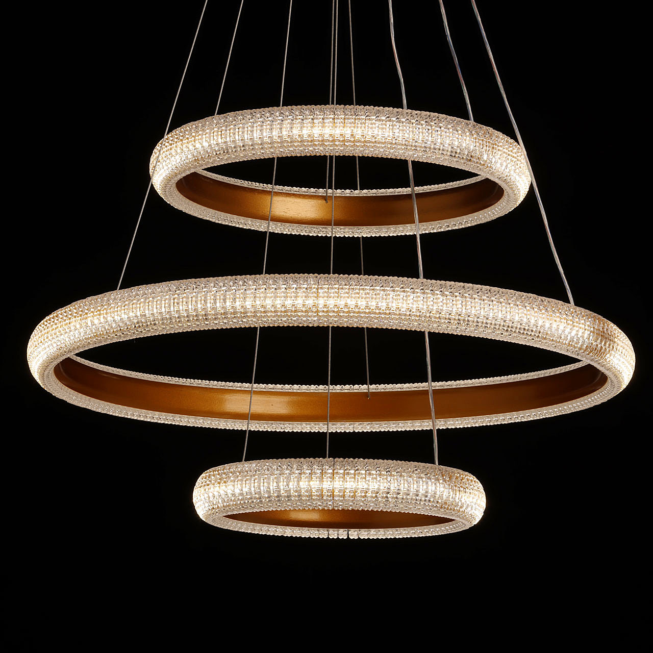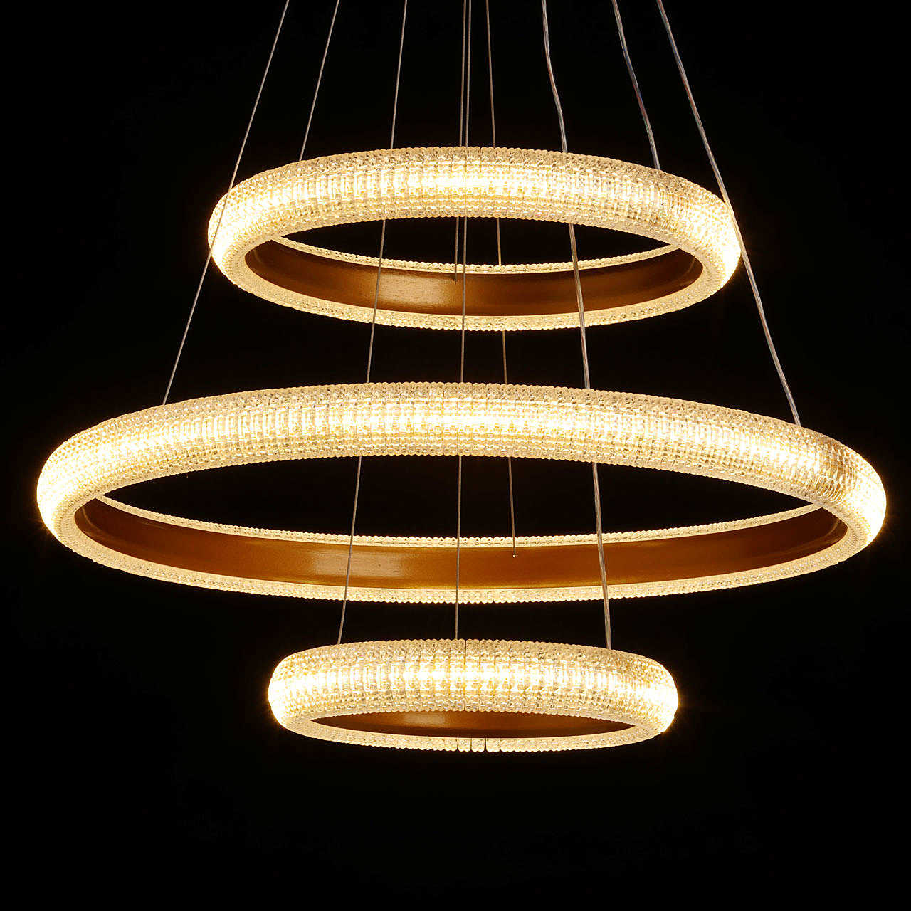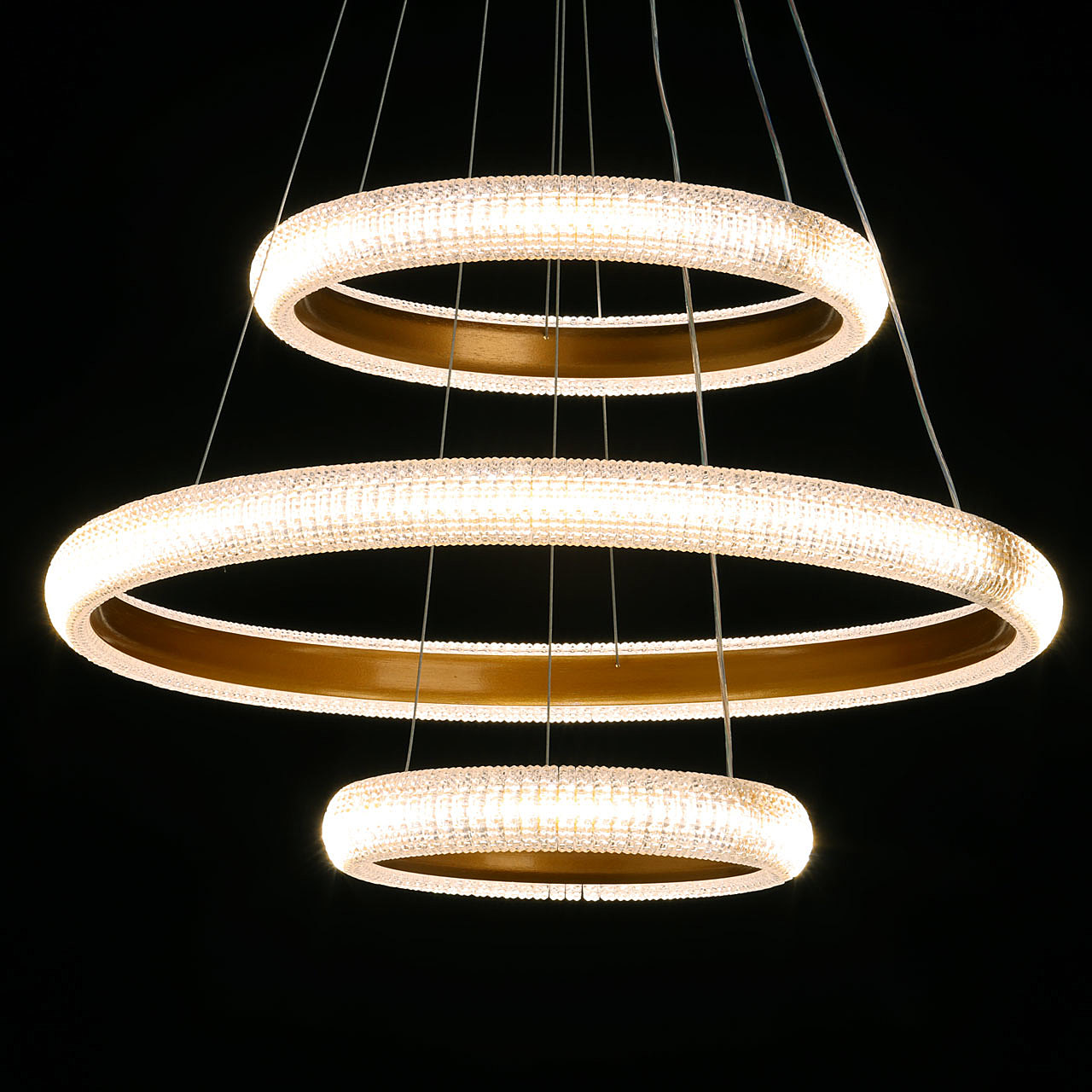 Акцентный плафон придает люстре уникальность, повышая ее привлекательность. Сочетание фактур глянцевого и матового золота придает люстре элегантности и стильности. Современный высокотехнологичный акрил эффектно преломляет свет, создавая игру бликов. Сочетание качественных материалов, оригинального дизайна и многофункциональности делает люстру превосходным выбором для, тех кто ценит стиль и эстетику в интерьере. Многорежимность освещения от 3000К до 6500К позволяет подобрать комфортную температуру света. Диммирование поможет выбрать необходимую интенсивность светового потока, а ПДУ обеспечит удобную эксплуатацию люстры. Светодиодные источники света экономичны и безопасны. Возможность устанавливать комфортную высоту.