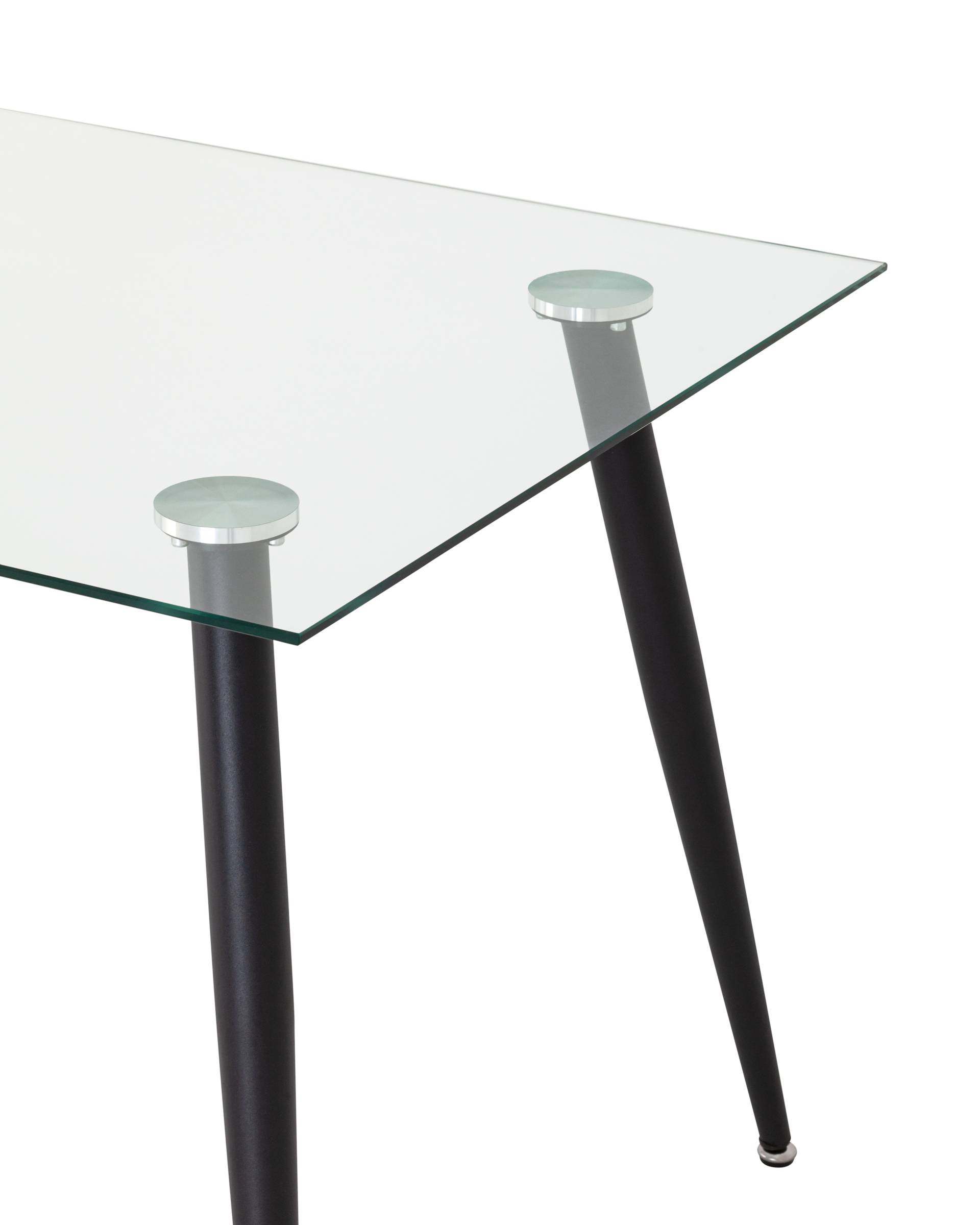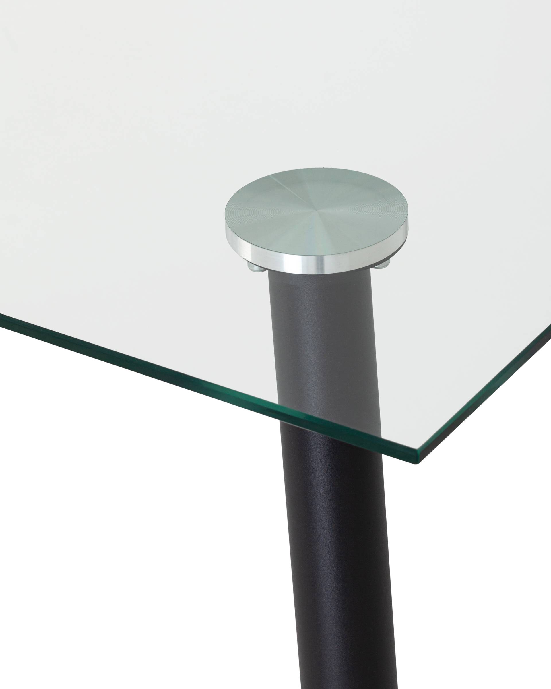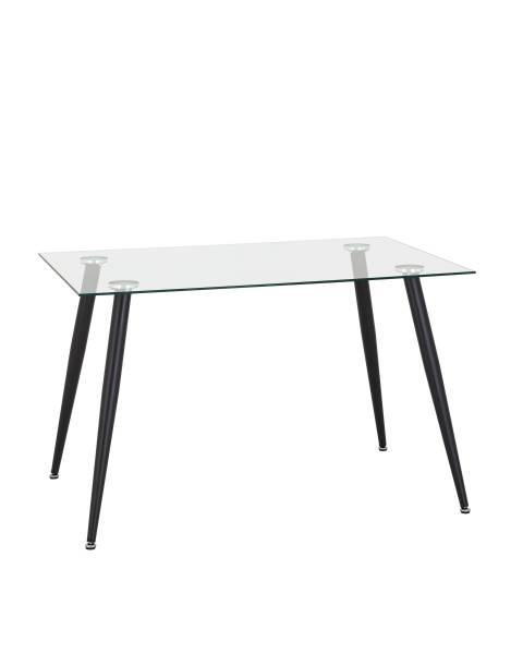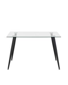 <p>Обеденный стол со стеклянной столешницей. Закаленное стекло выдерживает большие нагрузки, обладает высокой термоустойчивостью и прочностью. Стол украшают крепкие ножки, выполненные из металла, покрытые краской в черном цвете, что смотрится очень гармонично.</p>