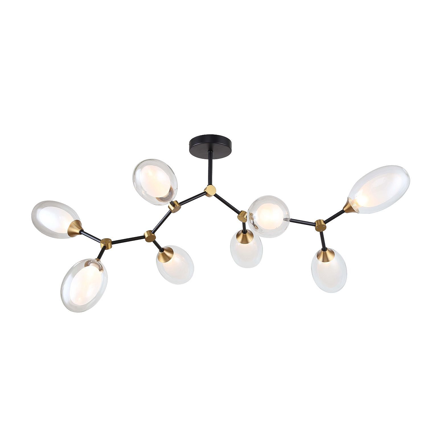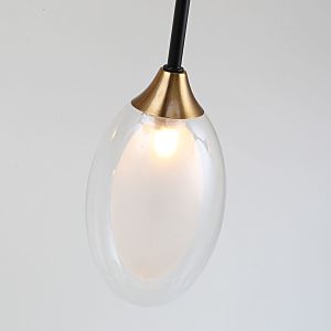 каркас черного цвета в сочетании с декоративными элементами латунного цвета, плафон из двойного стекла белого и прозрачного цвета