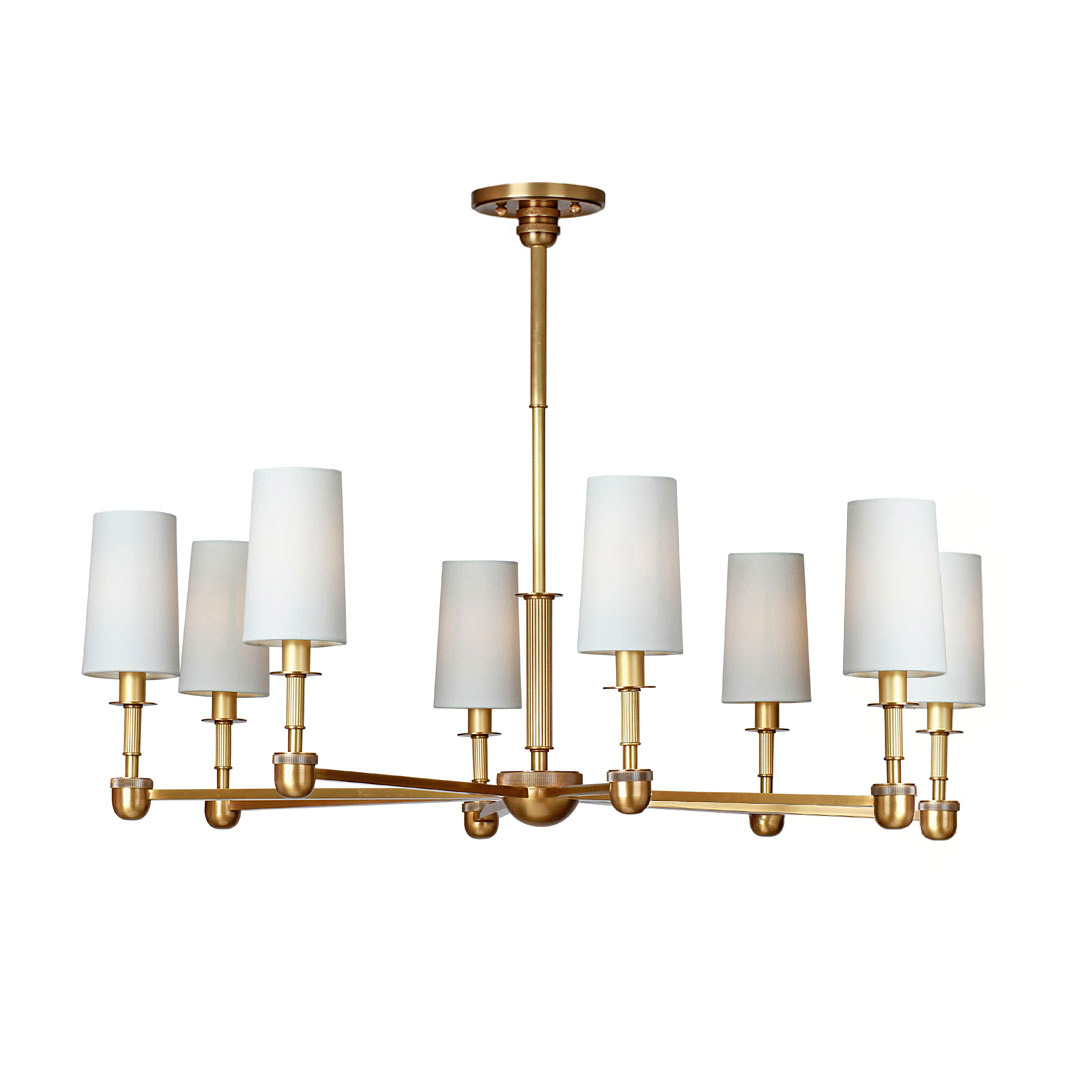 Люстра подвесная Cloyd PADDOCK (Клойд Пэддок) C8 / арт.10022, высота: 56 - 133 см, источник света: E14 (LED ≈ 6 Вт) х 8 шт, цвет металла - латунь.