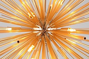 Допускается отличие страны-изготовителя, указанной в характеристиках. Линии производства могут находиться в нескольких государствах. Это не влияет на качество изготовления товара: все заводы данного бренда работают по общим стандартам, а готовые изделия проходят соответствующий контроль.Китай Коллекция Pagliare ЦветЦвет арматуры Золото Цвет Золото Материал арматуры Металл Цвет плафона Черный Материал плафона Металл РазмерыВысота (мм) 1100 Диаметр (мм) 800 Высота минимальная (мм) 550 Ширина (мм) 800 ЭлектрикаКоличество ламп (шт) 15 Цоколь G9 Лампочки в комплекте Нет в комплекте Мощность лампы (Вт) 40 Общая мощность (Вт) 600 Световой поток 6300 Дополнительная информацияСпособ крепления Планка Вес (Кг) 6,5 Тип подвеса На тросах -