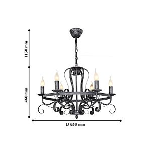 Допускается отличие страны-изготовителя, указанной в характеристиках. Линии производства могут находиться в нескольких государствах. Это не влияет на качество изготовления товара: все заводы данного бренда работают по общим стандартам, а готовые изделия проходят соответствующий контроль.Германия Коллекция Palermo ЦветЦвет арматуры Черный, серебристая патина Цвет Черный Материал арматуры Металл РазмерыВысота (мм) 460 Диаметр (мм) 650 Ширина (мм) 650 ЭлектрикаКоличество ламп (шт) 6 Цоколь E14 Мощность лампы (Вт) 60 Напряжение (В) 220 Дополнительная информацияСпособ крепления Крюк Вес (Кг) 4,6 Тип подвеса На цепи -