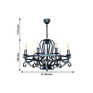 Допускается отличие страны-изготовителя, указанной в характеристиках. Линии производства могут находиться в нескольких государствах. Это не влияет на качество изготовления товара: все заводы данного бренда работают по общим стандартам, а готовые изделия проходят соответствующий контроль.Германия Коллекция Palermo ЦветЦвет арматуры Черный, серебристая патина Цвет Черный Материал арматуры Металл РазмерыВысота (мм) 1650 Диаметр (мм) 760 Высота минимальная (мм) 500 Ширина (мм) 760 ЭлектрикаКоличество ламп (шт) 9 Цоколь E14 Мощность лампы (Вт) 60 Напряжение (В) 220 Дополнительная информацияСпособ крепления Крюк Вес (Кг) 7 Тип подвеса На цепи -