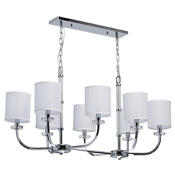 Допускается отличие страны-изготовителя, указанной в характеристиках. Линии производства могут находиться в нескольких государствах. Это не влияет на качество изготовления товара: все заводы данного бренда работают по общим стандартам, а готовые изделия проходят соответствующий контроль.Германия Коллекция Палермо ЦветЦвет арматуры Хром Цвет Хром Материал арматуры Металл Цвет плафона Белый Материал плафона Текстиль РазмерыВысота (мм) 2620 Длина (мм) 1100 Высота минимальная (мм) 620 Ширина (мм) 660 ЭлектрикаКоличество ламп (шт) 8 Цоколь E14 Лампочки в комплекте Нет в комплекте Мощность лампы (Вт) 60 Напряжение (В) 220 Площадь освещения 24 Дополнительная информацияСпособ крепления Планка Степень защиты (IP) IP20 Вес (Кг) 11.36 Тип подвеса На цепи -