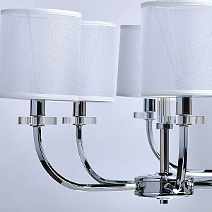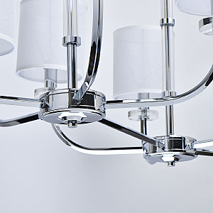 Модный минимализм в американском стиле придает актуальности интерьеру.Абажур рисово-белого цвета смягчает строгость форм.Полная семья решает задачи общего и зонального освещения.Трендовые цвета в коллекции, хрома и бронзы, универсальны в любом интерьере.