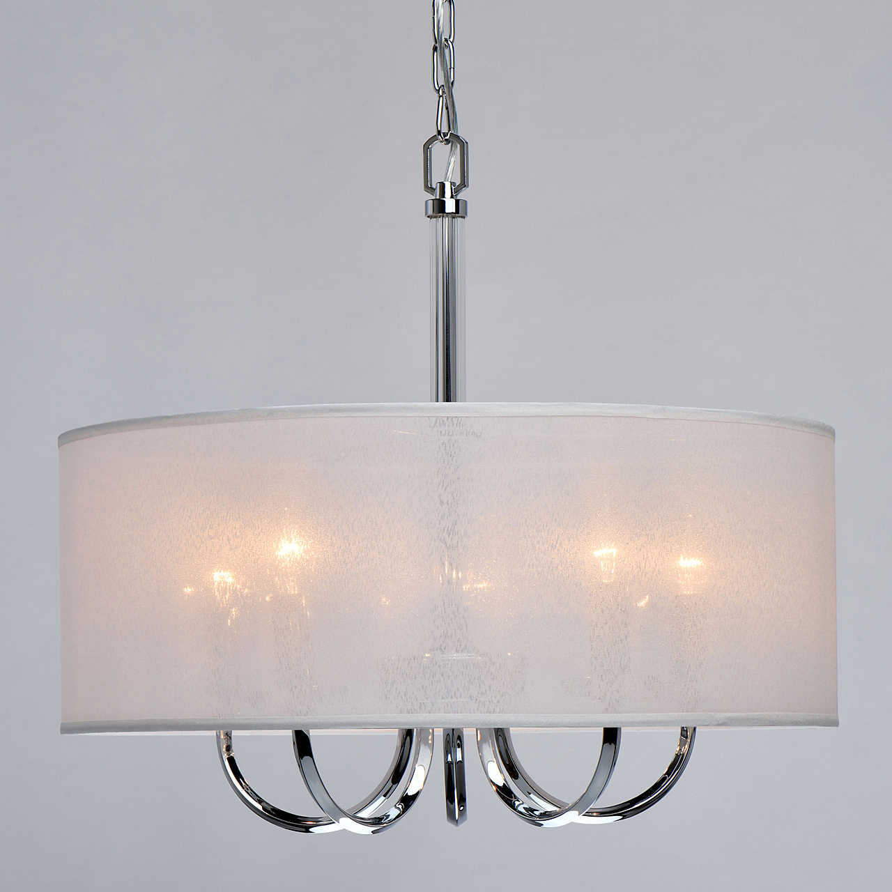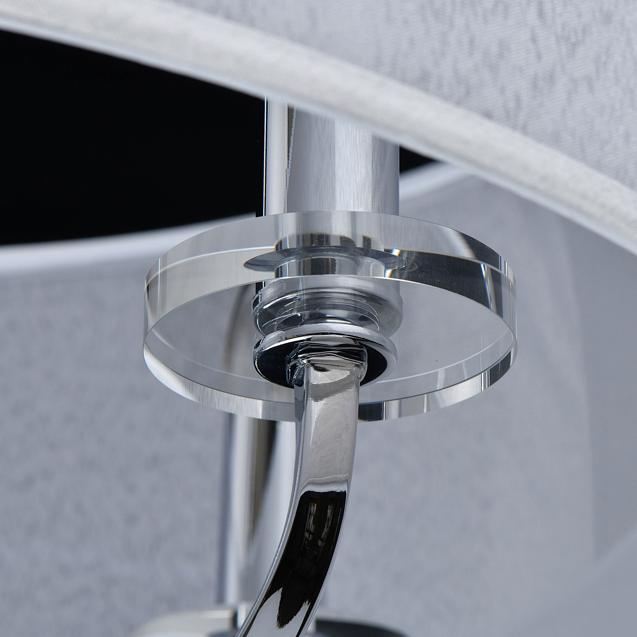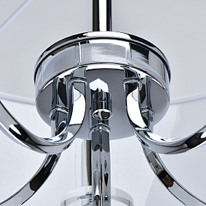Модный минимализм в американском стиле придает актуальности интерьеру.Абажур рисово-белого цвета смягчает строгость форм.Полная семья решает задачи общего и зонального освещения.Трендовые цвета в коллекции, хрома и бронзы, универсальны в любом интерьере.