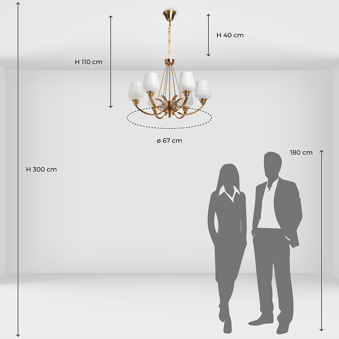 Допускается отличие страны-изготовителя, указанной в характеристиках. Линии производства могут находиться в нескольких государствах. Это не влияет на качество изготовления товара: все заводы данного бренда работают по общим стандартам, а готовые изделия проходят соответствующий контроль.Германия Коллекция Палермо ЦветЦвет арматуры Медь Цвет Медь Материал арматуры Металл, Сплав алюминия Цвет декора прозрачный Цвет плафона Белый Материал декора Стекло Материал плафона Стекло РазмерыВысота (мм) 1100 Диаметр (мм) 670 Высота минимальная (мм) 400 Ширина (мм) 670 ЭлектрикаКоличество ламп (шт) 6 Цоколь E27 Лампочки в комплекте Нет в комплекте Мощность лампы (Вт) 40 Напряжение (В) 220 Площадь освещения 12 Дополнительная информацияСтепень защиты (IP) IP20 Вес (Кг) 6 Тип подвеса На цепи -
