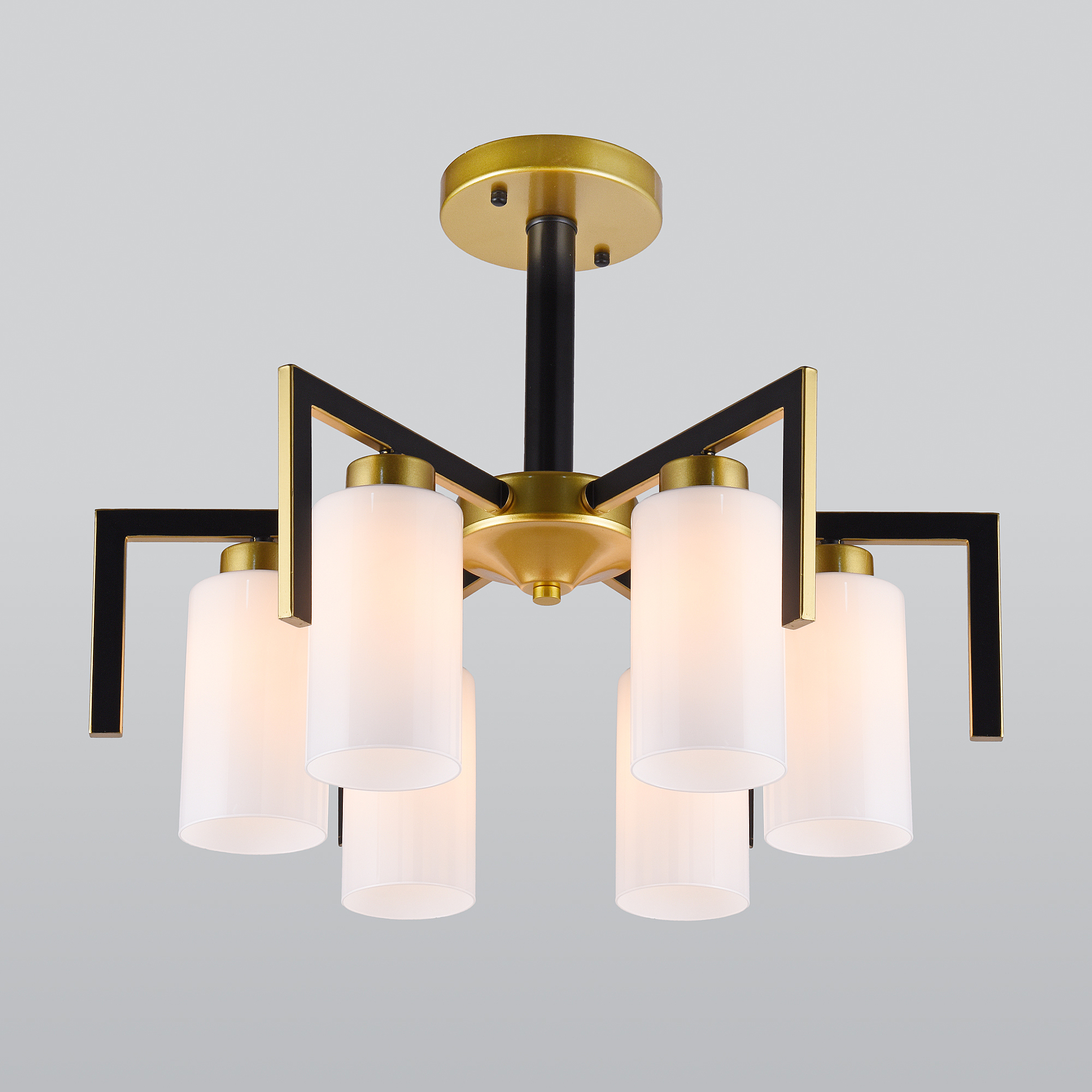 Допускается отличие страны-изготовителя, указанной в характеристиках. Линии производства могут находиться в нескольких государствах. Это не влияет на качество изготовления товара: все заводы данного бренда работают по общим стандартам, а готовые изделия проходят соответствующий контроль.Китай Коллекция Palio ЦветЦвет арматуры Золото, Черный Цвет Черный Материал арматуры Металл Цвет плафона Белый Материал плафона Стекло РазмерыВысота (мм) 450 Длина (мм) 570 Ширина (мм) 570 ЭлектрикаКоличество ламп (шт) 6 Цоколь E27 Мощность лампы (Вт) 60 Напряжение (В) 220 Площадь освещения 18 Дополнительная информацияСтепень защиты (IP) IP20 -