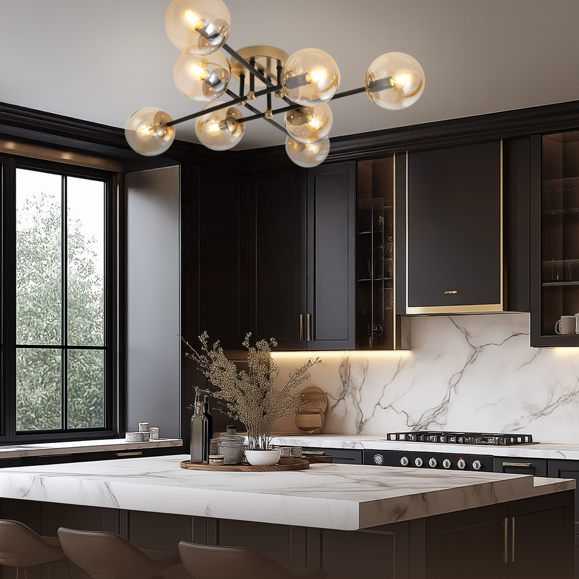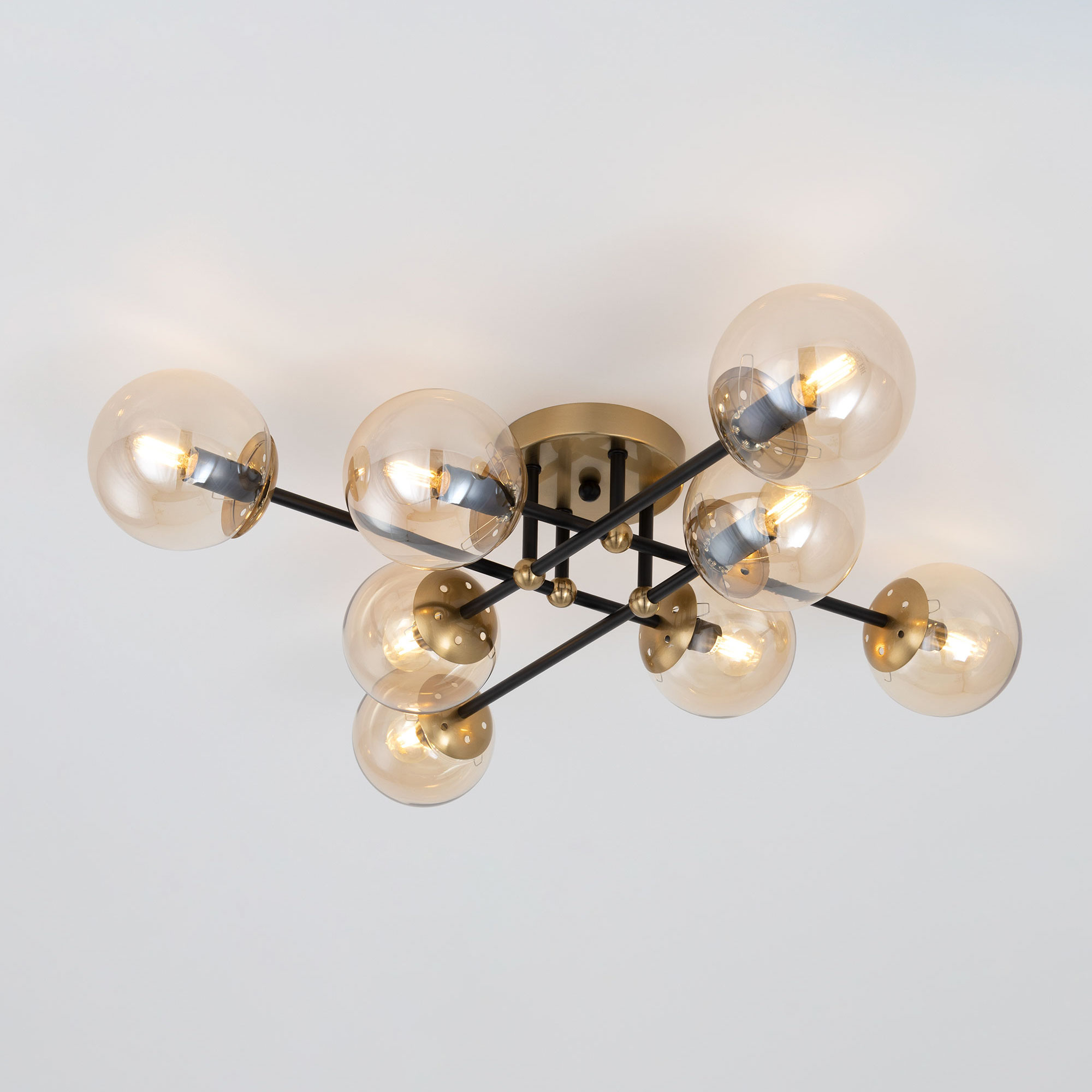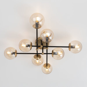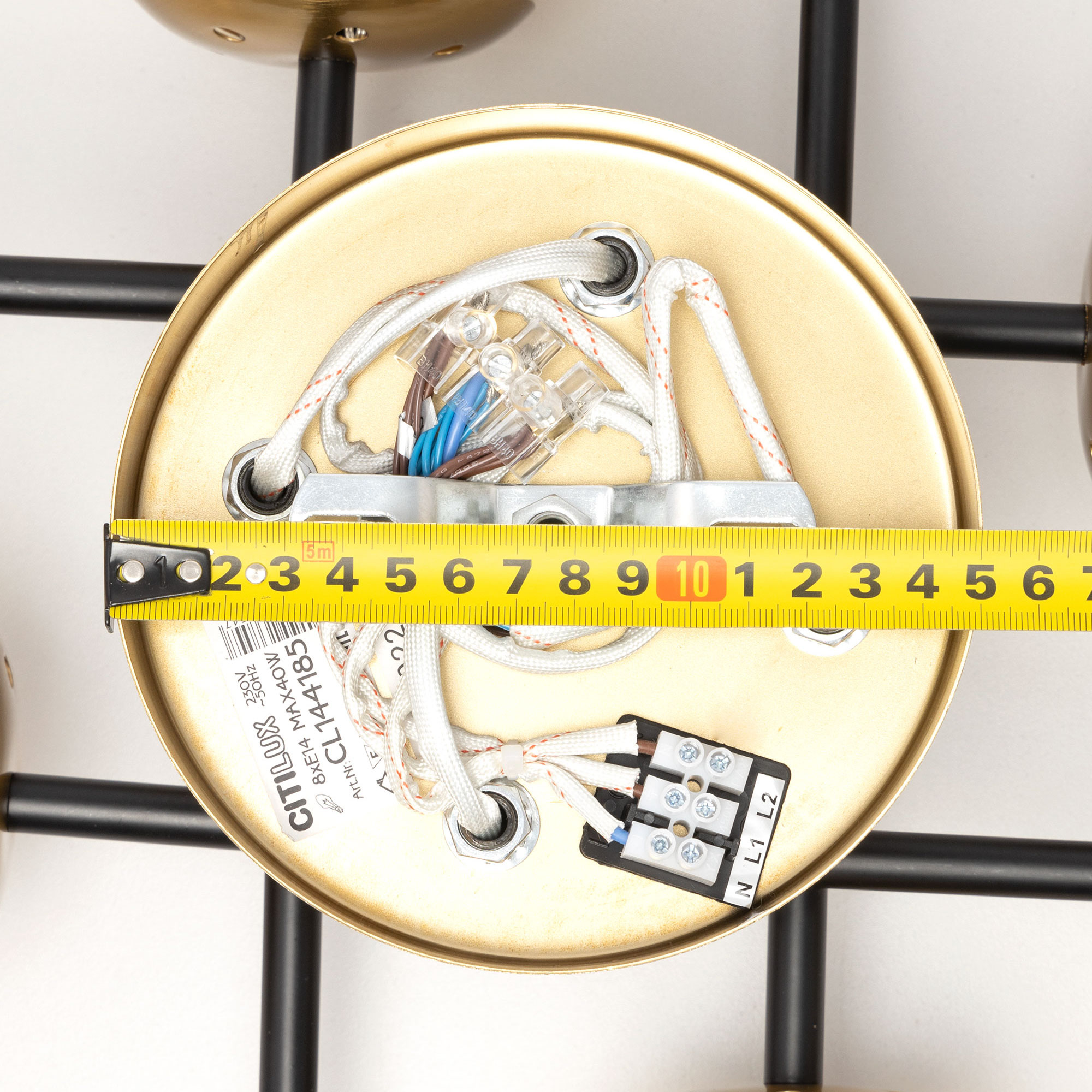 Допускается отличие страны-изготовителя, указанной в характеристиках. Линии производства могут находиться в нескольких государствах. Это не влияет на качество изготовления товара: все заводы данного бренда работают по общим стандартам, а готовые изделия проходят соответствующий контроль.Дания Коллекция Памела ЦветЦвет арматуры Бронза, Черный Цвет Бронза Материал арматуры Металл Цвет плафона шампань Материал плафона Стекло РазмерыВысота (мм) 200 Длина (мм) 760 Ширина (мм) 760 ЭлектрикаКоличество ламп (шт) 8 Цоколь Е14 Тип лампы Накаливания, Светодиодные, Компактные люмин. Мощность лампы (Вт) 40 Общая мощность (Вт) 320 Световой поток 5300 Площадь освещения 20 Дополнительная информацияСтепень защиты (IP) IP20 -