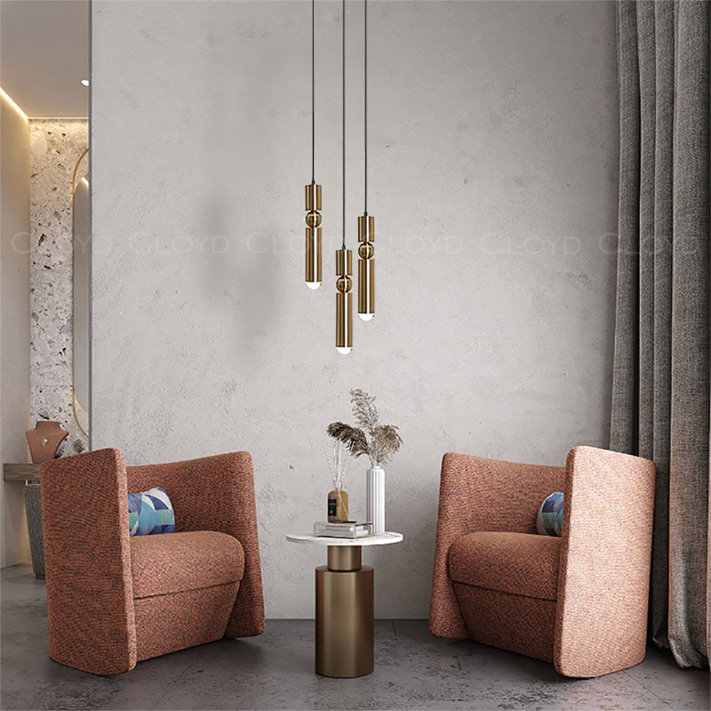 Подвесной светильник Cloyd PARETO (Клойд Парето) P1 / арт.11062, ø: 6 см. высота: 35 см (подвес в комплекте - до 160 см), источник света: E27 (LED ≈ 10 Вт) х 1 шт, цвет металла - латунь.