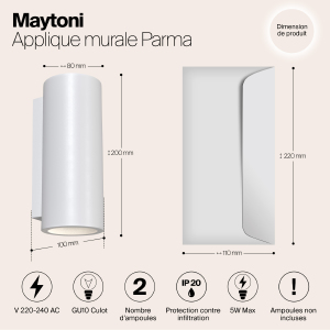 Допускается отличие страны-изготовителя, указанной в характеристиках. Линии производства могут находиться в нескольких государствах. Это не влияет на качество изготовления товара: все заводы данного бренда работают по общим стандартам, а готовые изделия проходят соответствующий контроль.Германия Коллекция Parma ЦветЦвет арматуры Белый Цвет Белый Материал арматуры Гипс РазмерыВысота (мм) 200 Ширина (мм) 80 Глубина (мм) 100 ЭлектрикаКоличество ламп (шт) 2 Цоколь GU10 Лампочки в комплекте Нет в комплекте Мощность лампы (Вт) 10 Напряжение (В) 220 Дополнительная информацияСтепень защиты (IP) IP20 Вес (Кг) 0,66 -
