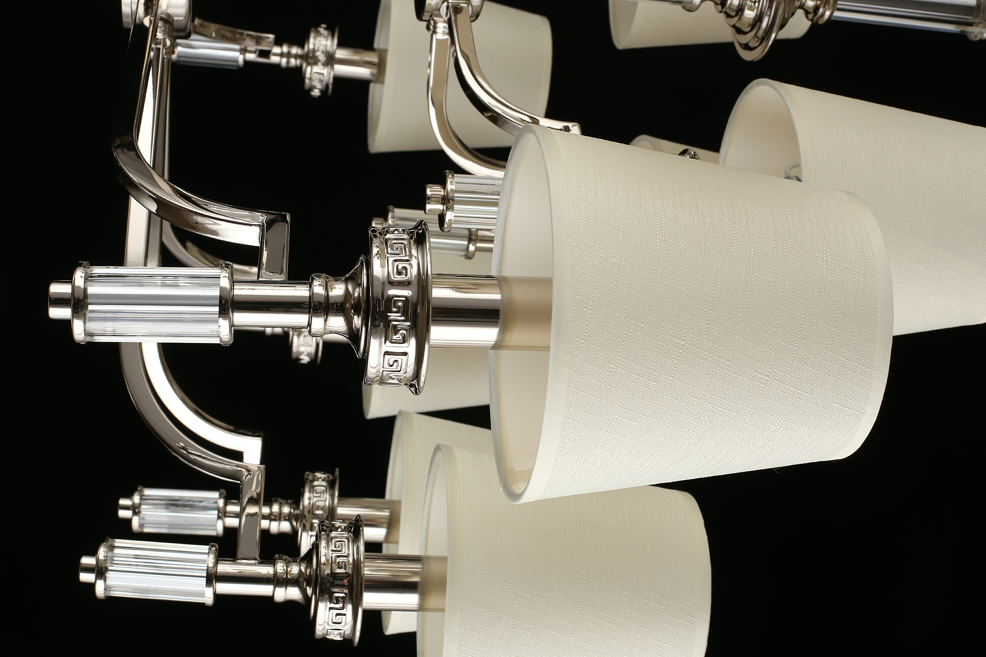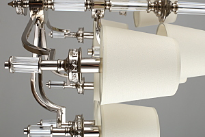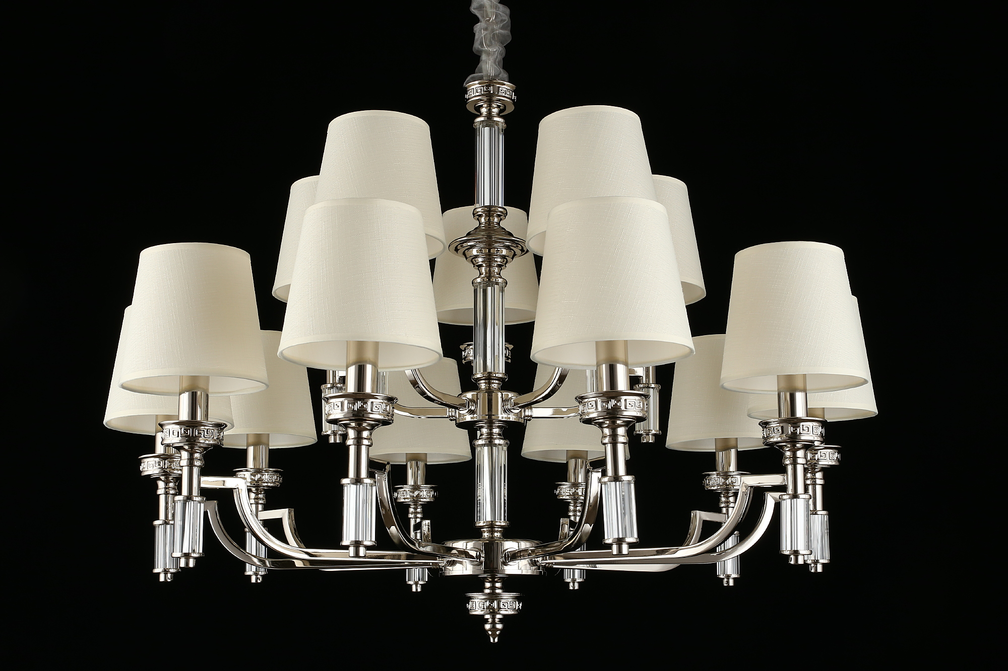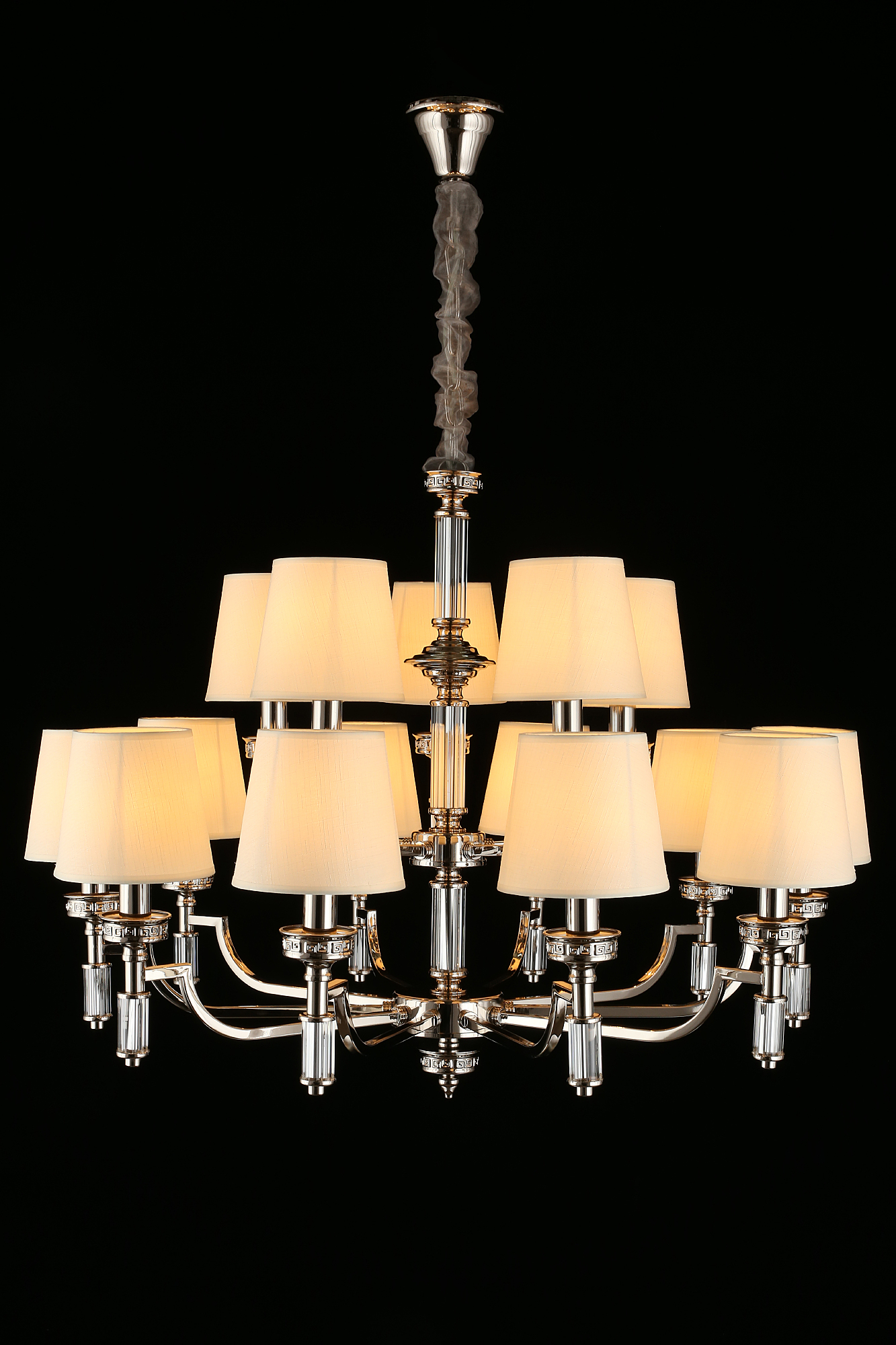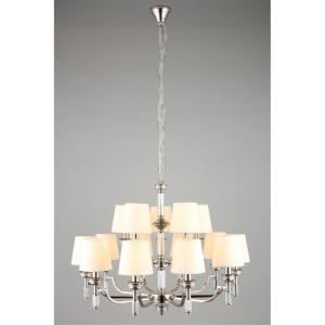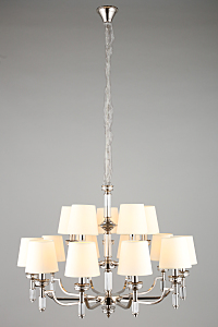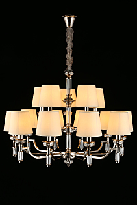 Допускается отличие страны-изготовителя, указанной в характеристиках. Линии производства могут находиться в нескольких государствах. Это не влияет на качество изготовления товара: все заводы данного бренда работают по общим стандартам, а готовые изделия проходят соответствующий контроль.Польша Коллекция Patricia ЦветЦвет арматуры Хром Цвет Хром Материал арматуры Металл Цвет декора прозрачный Цвет плафона молочный Материал декора Хрусталь Материал плафона Ткань РазмерыВысота (мм) 1600 Диаметр (мм) 900 Высота минимальная (мм) 850 Ширина (мм) 900 ЭлектрикаКоличество ламп (шт) 15 Цоколь E14 Лампочки в комплекте Нет в комплекте Мощность лампы (Вт) 40 Общая мощность (Вт) 600 Световой поток 6300 Дополнительная информацияСпособ крепления Планка Степень защиты (IP) IP20 Вес (Кг) 9.3 Тип подвеса На цепи -