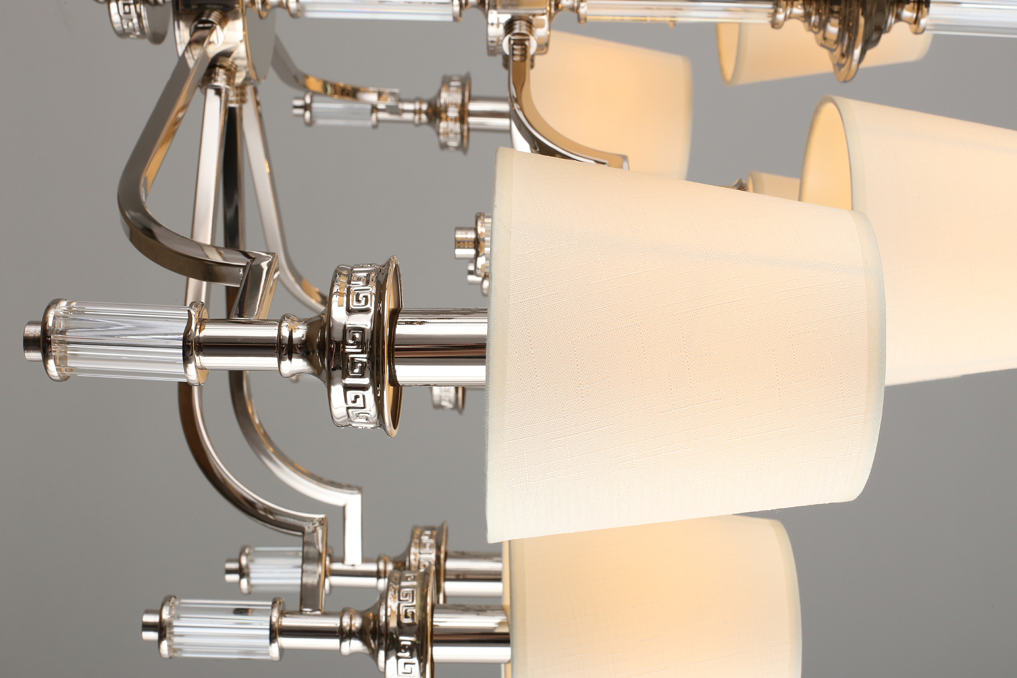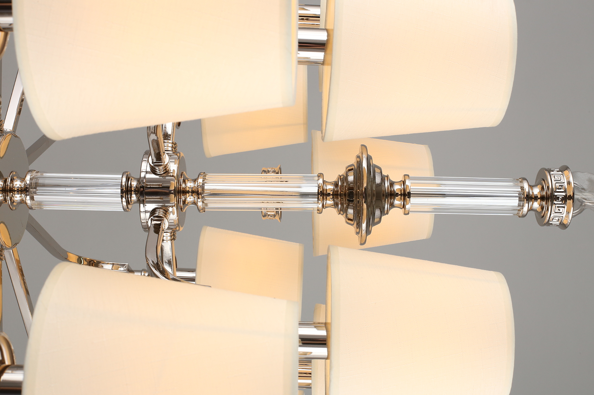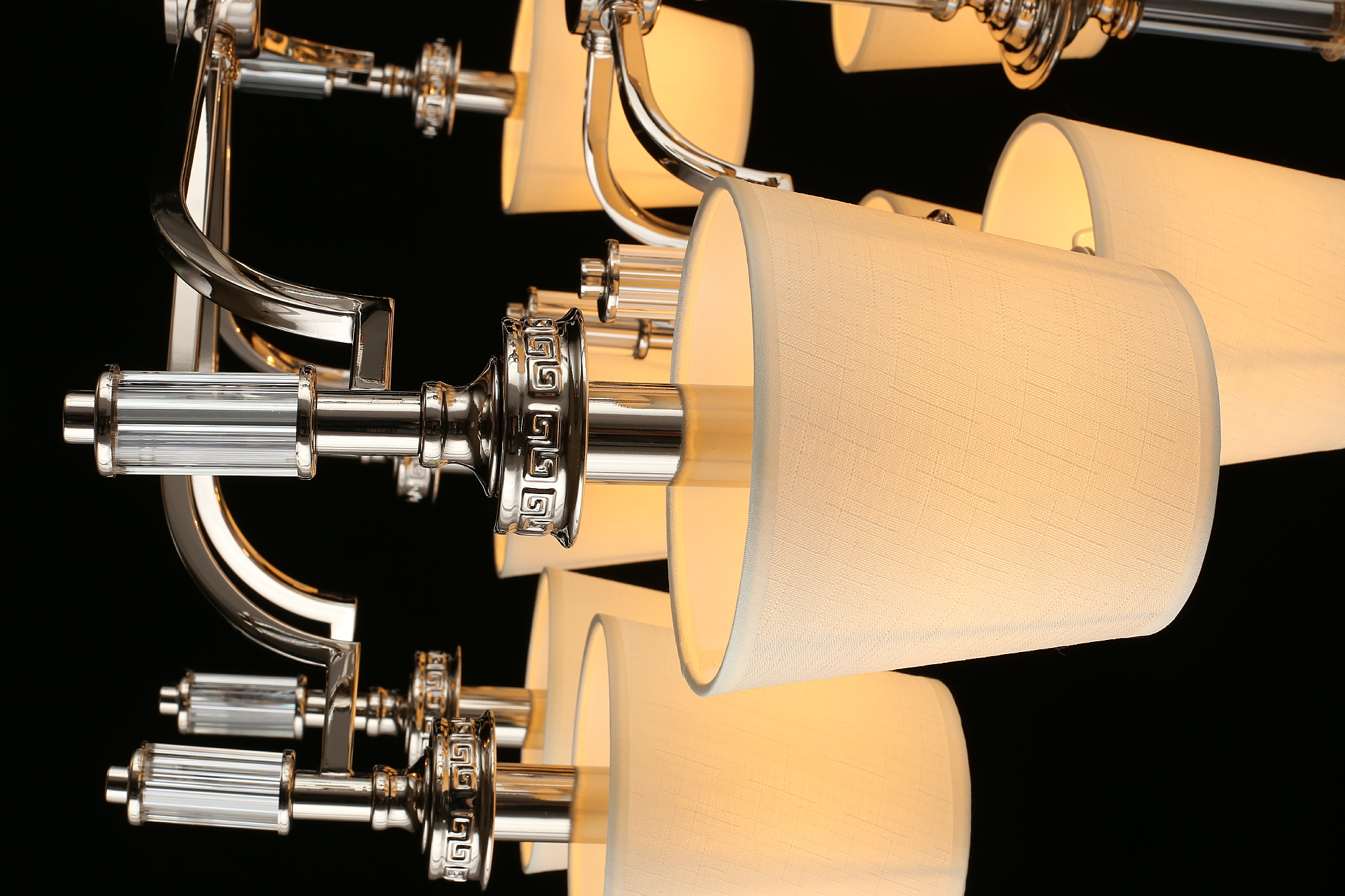 Допускается отличие страны-изготовителя, указанной в характеристиках. Линии производства могут находиться в нескольких государствах. Это не влияет на качество изготовления товара: все заводы данного бренда работают по общим стандартам, а готовые изделия проходят соответствующий контроль.Польша Коллекция Patricia ЦветЦвет арматуры Хром Цвет Хром Материал арматуры Металл Цвет декора прозрачный Цвет плафона молочный Материал декора Хрусталь Материал плафона Ткань РазмерыВысота (мм) 1600 Диаметр (мм) 900 Высота минимальная (мм) 850 Ширина (мм) 900 ЭлектрикаКоличество ламп (шт) 15 Цоколь E14 Лампочки в комплекте Нет в комплекте Мощность лампы (Вт) 40 Общая мощность (Вт) 600 Световой поток 6300 Дополнительная информацияСпособ крепления Планка Степень защиты (IP) IP20 Вес (Кг) 9.3 Тип подвеса На цепи -