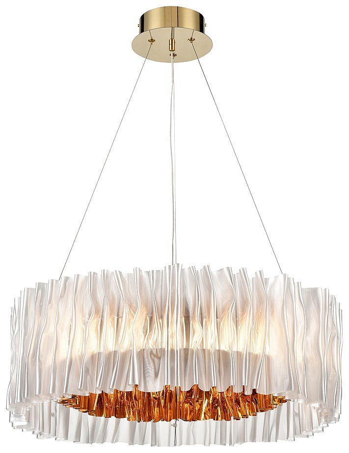 Допускается отличие страны-изготовителя, указанной в характеристиках. Линии производства могут находиться в нескольких государствах. Это не влияет на качество изготовления товара: все заводы данного бренда работают по общим стандартам, а готовые изделия проходят соответствующий контроль.Италия Коллекция Patricia ЦветЦвет арматуры Золото Цвет Золото Материал арматуры Металл Цвет плафона прозрачный, золотистый Материал плафона Акрил РазмерыВысота (мм) 1200 Длина (мм) 600 Диаметр (мм) 600 Высота минимальная (мм) 200 Ширина (мм) 600 ЭлектрикаКоличество ламп (шт) 1 Цоколь LED Тип лампы Светодиодная Мощность лампы (Вт) 48 Напряжение (В) 220 Цветовая температура 3000, 6000, 4000 Площадь освещения 17 Дополнительная информацияСпособ крепления Планка Степень защиты (IP) IP20 Техническая оссобеность Регулировка цветовой температуры Тип подвеса На тросах Тип управления Пульт ДУ -