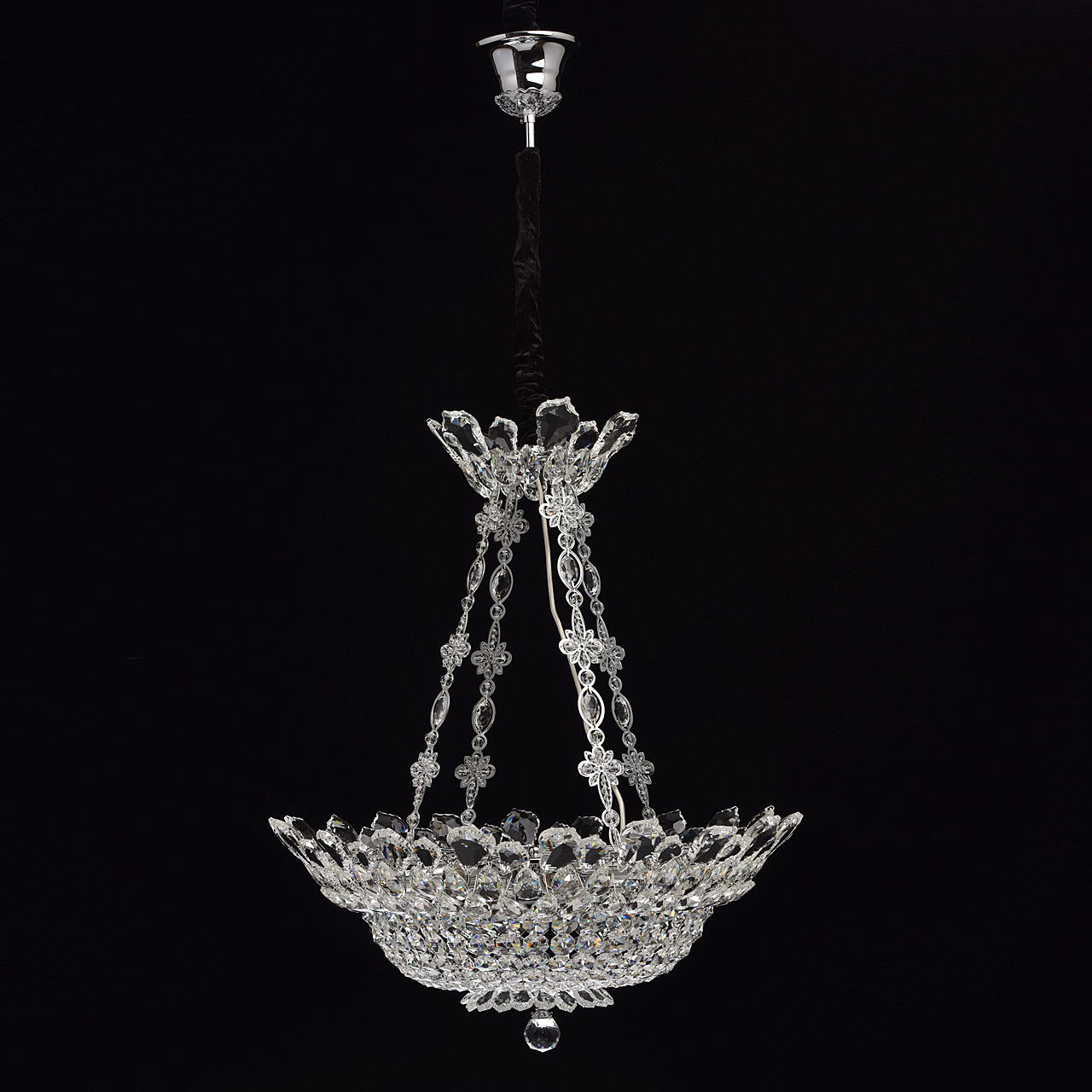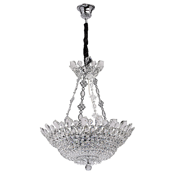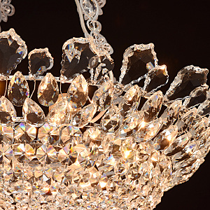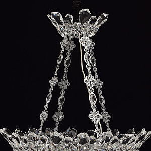 Классический пример идеального хрустального светильника - люстра из коллекции "Патриция". Хромированное металлическое основание украшает роскошная драгоценная чаша античной формы. Светильник декорирован множеством элементов из прозрачного стекла, обилием хрустальных подвесок. Есть два варианта такой "красавицы" - потолочная и подвесная модель, что очень удобно. Даже если вы владелец комнат с невысокими потолками, вы сможете приобрести этот шикарный светильник.