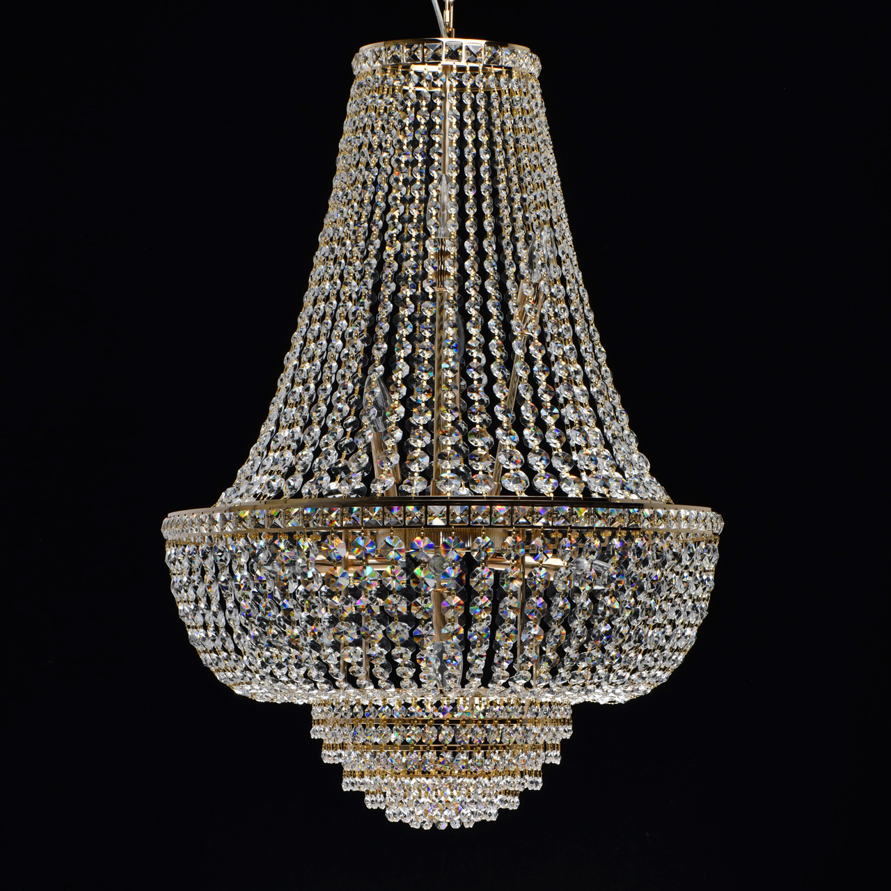 Двунаправленный свет за счет верхнего и нижнего ярусов светильника.Хрустальный декор украшает люстру и создает красивую игру света.Полностью собран для удобства установки.Увеличенная длина цепи 2 м для освещения парадных помещений с высокими потолкамиПолная семья решает задачи общего и зонального освещения.