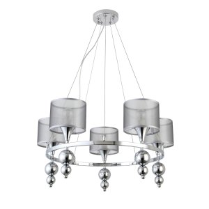 Допускается отличие страны-изготовителя, указанной в характеристиках. Линии производства могут находиться в нескольких государствах. Это не влияет на качество изготовления товара: все заводы данного бренда работают по общим стандартам, а готовые изделия проходят соответствующий контроль.Италия Коллекция Pazione ЦветЦвет арматуры Хром Цвет Хром Материал арматуры Металл Цвет плафона Серебристый Материал плафона Текстиль РазмерыВысота (мм) 1000 Диаметр (мм) 630 Высота минимальная (мм) 300 Ширина (мм) 630 ЭлектрикаКоличество ламп (шт) 5 Цоколь E14 Тип лампы Накаливания Мощность лампы (Вт) 40 Общая мощность (Вт) 200 Напряжение (В) 220 Площадь освещения 10 Дополнительная информацияСпособ крепления Планка Вес (Кг) 3 Тип подвеса На тросах -