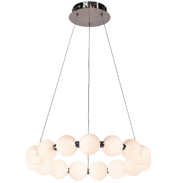Допускается отличие страны-изготовителя, указанной в характеристиках. Линии производства могут находиться в нескольких государствах. Это не влияет на качество изготовления товара: все заводы данного бренда работают по общим стандартам, а готовые изделия проходят соответствующий контроль.Испания Коллекция Pearl ЦветЦвет арматуры глянцевый хром Цвет Хром Цвет плафона белый матовый ЭлектрикаКоличество ламп (шт) 15 Лампочки в комплекте да Мощность лампы (Вт) 35 Напряжение (В) 220 Световой поток 3000 Цветовая температура 3500 Площадь освещения 7,5 Дополнительная информацияДиммирование Нет Тип подвеса На тросах -