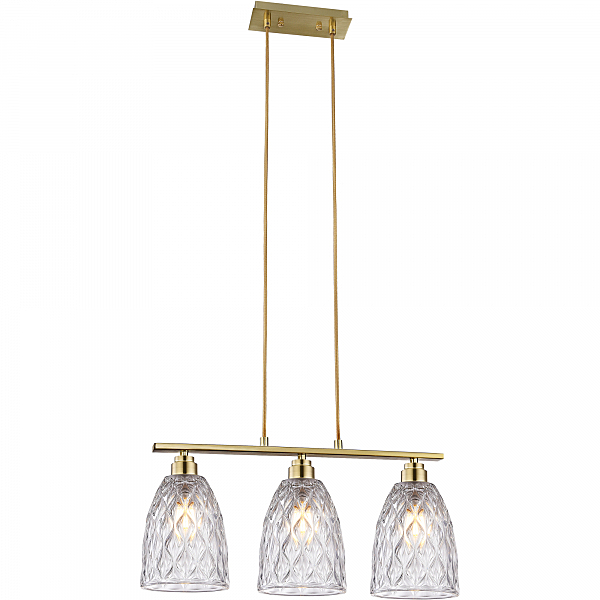 Допускается отличие страны-изготовителя, указанной в характеристиках. Линии производства могут находиться в нескольких государствах. Это не влияет на качество изготовления товара: все заводы данного бренда работают по общим стандартам, а готовые изделия проходят соответствующий контроль.Россия Коллекция Pearle ЦветЦвет арматуры золотой Цвет Золото Материал арматуры Металл Цвет плафона прозрачный Материал плафона Стекло РазмерыВысота (мм) 1000 Длина (мм) 485 Высота минимальная (мм) 190 Ширина (мм) 125 ЭлектрикаКоличество ламп (шт) 3 Цоколь E14 Мощность лампы (Вт) 40 Дополнительная информацияСтепень защиты (IP) IP20 Вес (Кг) 3,16 Тип подвеса На тросах Количество подвесов Одиночный подвес -
