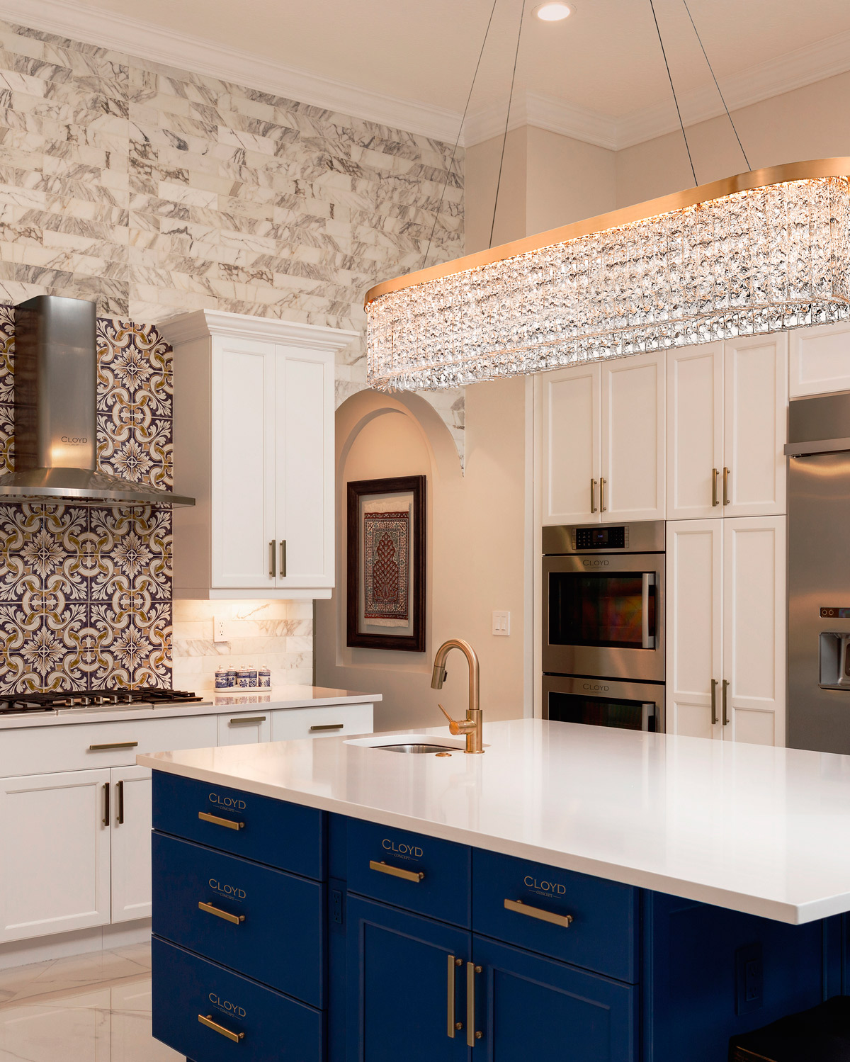 Люстра подвесная Cloyd PERGAM (Клойд Пергам) C1 / арт.10685, ширина: 36 см. длина: 110 см. высота: 21 см, источник света: LED-лента 82 Вт, цвет металла - латунь.