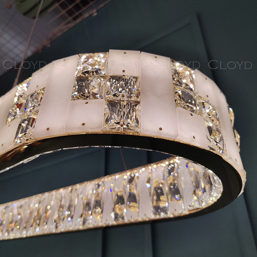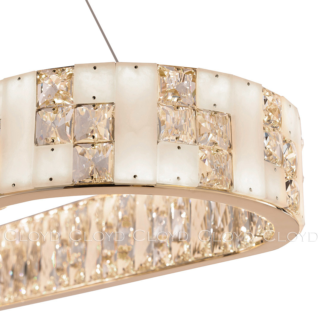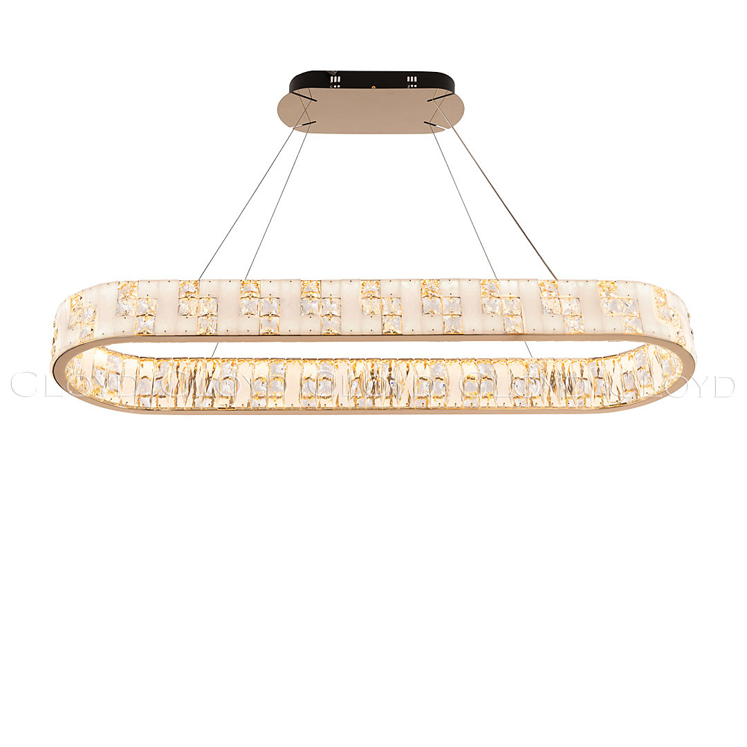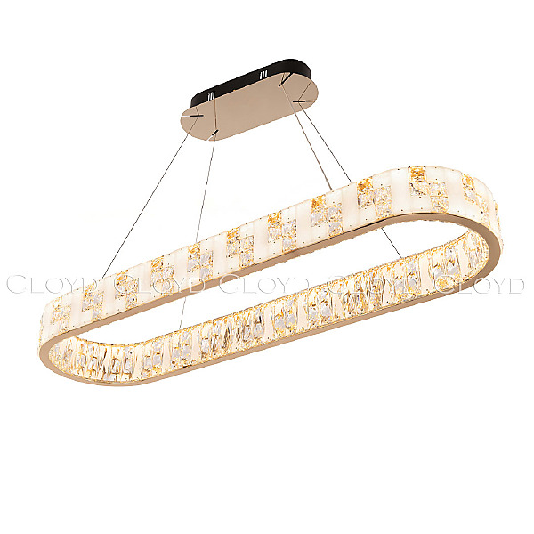 Люстра подвесная Cloyd PERSEFONA (Клойд Персефона) C1 / арт.11229, ширина: 32 см. длина: 110 см. высота: 10 см (подвес в комплекте - до 150 см), источник света: LED-лента 100 Вт, цвет металла - золото блестящее.