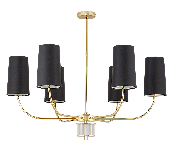 Шестилучевая люстра Pesaro PES-ZW-6 (Z) сочетает в себе классический стиль и современные элементы. Латунная отделка и изящные детали делают её центральным украшением помещения. Подходит для освещения средних и больших пространств, таких как столовые или гостиные, создавая тёплую и уютную атмосферу.