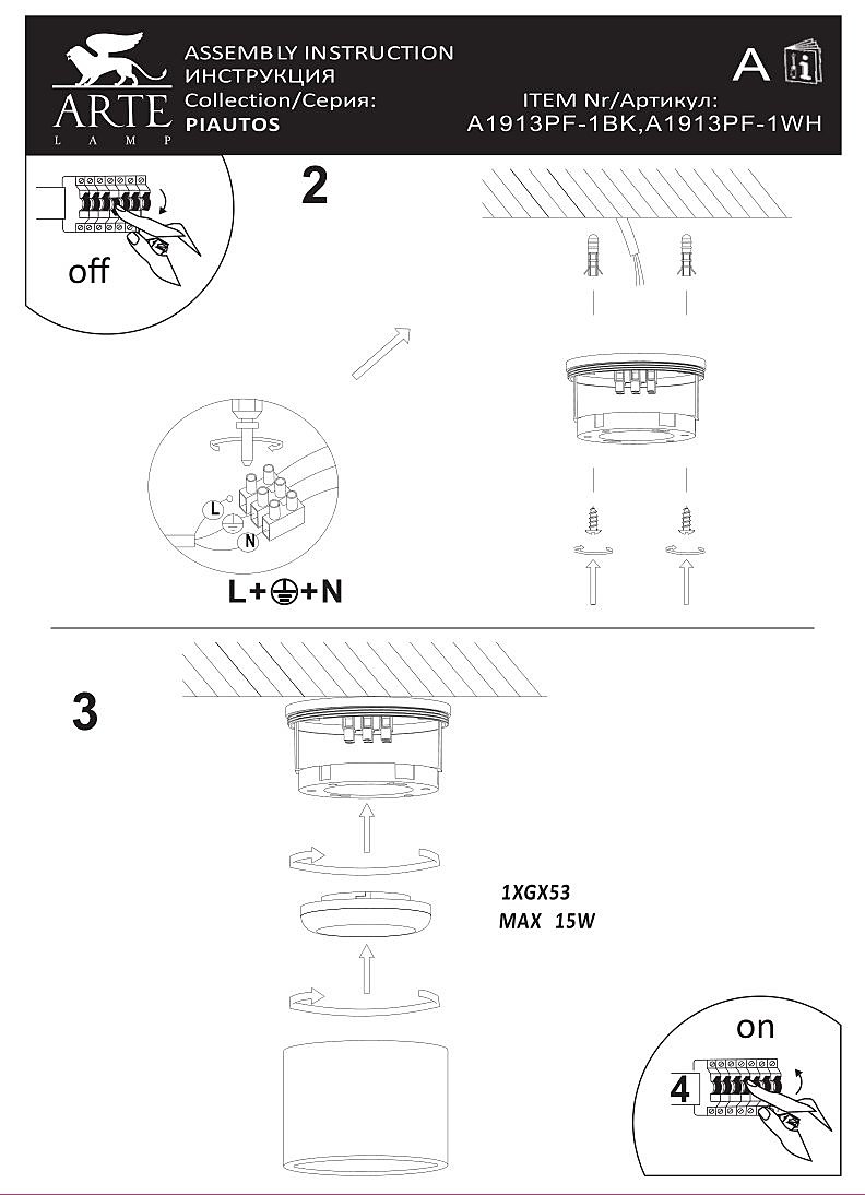 Производитель Arte Lamp Артикул A1913PF-1BK Страна