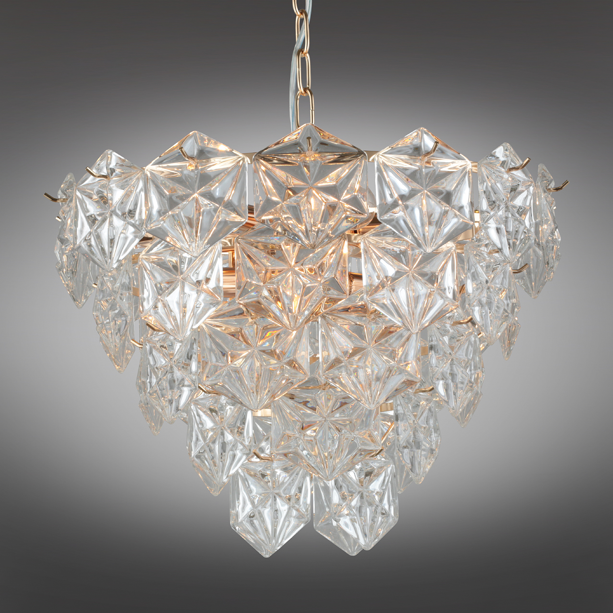 Допускается отличие страны-изготовителя, указанной в характеристиках. Линии производства могут находиться в нескольких государствах. Это не влияет на качество изготовления товара: все заводы данного бренда работают по общим стандартам, а готовые изделия проходят соответствующий контроль.Китай Коллекция Pinzolo ЦветЦвет арматуры Золото Цвет Прозрачный Материал арматуры Металл Цвет плафона прозрачный Материал плафона Стекло РазмерыВысота (мм) 900 Диаметр (мм) 520 Высота минимальная (мм) 500 Ширина (мм) 520 ЭлектрикаКоличество ламп (шт) 9 Цоколь E14 Лампочки в комплекте Нет в комплекте Мощность лампы (Вт) 40 Общая мощность (Вт) 360 Напряжение (В) 220 Световой поток 3780 Дополнительная информацияСпособ крепления Крюк Вес (Кг) 3.04 Тип подвеса На цепи -
