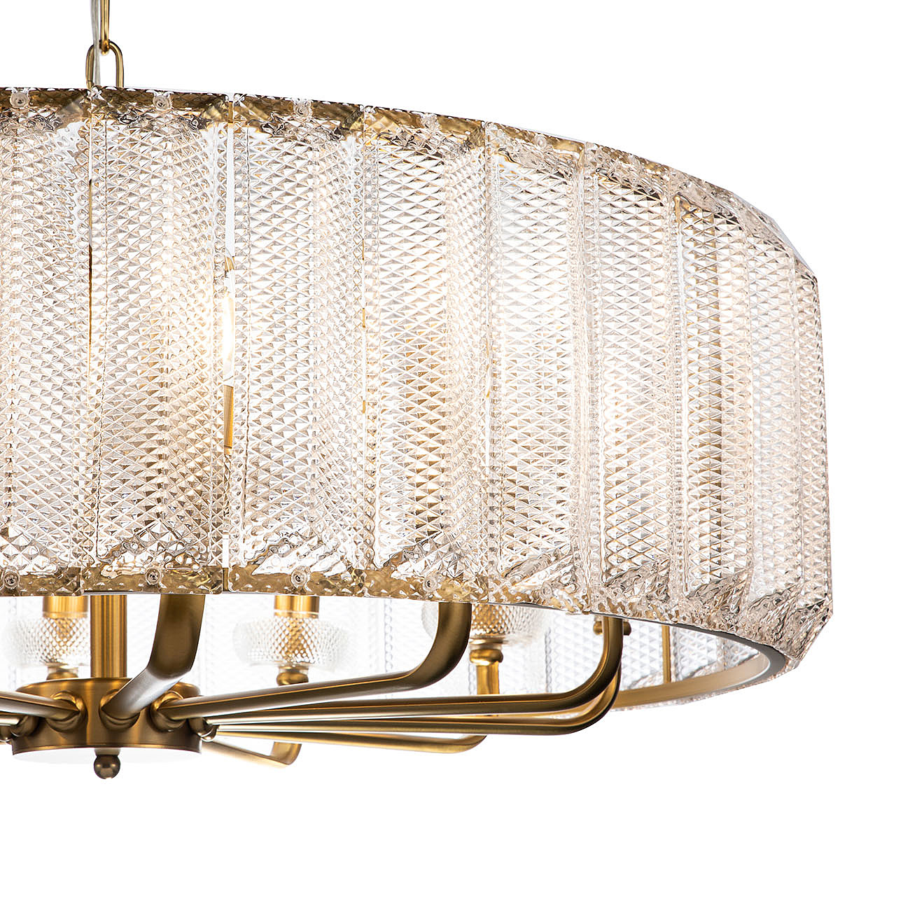 Допускается отличие страны-изготовителя, указанной в характеристиках. Линии производства могут находиться в нескольких государствах. Это не влияет на качество изготовления товара: все заводы данного бренда работают по общим стандартам, а готовые изделия проходят соответствующий контроль.Великобритания Коллекция Piroet ЦветЦвет арматуры Латунь Цвет Латунь Материал арматуры Металл Цвет декора прозрачный Цвет плафона прозрачный Материал декора Стекло Материал плафона Стекло РазмерыВысота (мм) 1000 Длина (мм) 800 Высота минимальная (мм) 295 Ширина (мм) 800 Диаметр абажура-плафона 730 Высота абажура-плафона 220 ЭлектрикаКоличество ламп (шт) 12 Цоколь E14 Мощность лампы (Вт) 40 Напряжение (В) 220 Площадь освещения 35 Дополнительная информацияСпособ крепления Планка Степень защиты (IP) IP20 Вес (Кг) 15.89 Тип подвеса На цепи -