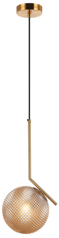 Светильник подвесной из коллекции Pizano гальванизирован в цвет бронзы и декорирован плафоном из фактурного стекла цвета шампань. Плафон устанавливается за счет винтовой резьбы. Благодаря хорошей центровке плафона светильник висит строго вертикально. Современная форма и высокое качество светильников идеально подойдут в современные и дизайнерские интерьеры.