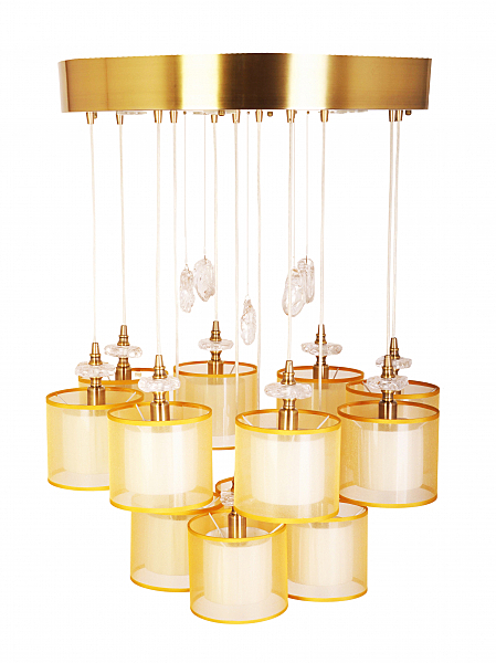 Допускается отличие страны-изготовителя, указанной в характеристиках. Линии производства могут находиться в нескольких государствах. Это не влияет на качество изготовления товара: все заводы данного бренда работают по общим стандартам, а готовые изделия проходят соответствующий контроль.Германия ЦветЦвет арматуры Бронза Цвет Бронза Материал арматуры Металл Материал плафона Текстиль, Пластик РазмерыВысота (мм) 800 Диаметр (мм) 600 Ширина (мм) 600 ЭлектрикаКоличество ламп (шт) 12+5 Цоколь E14, GU10 Тип лампы Светодиодная, Накаливания Мощность лампы (Вт) 40 Напряжение (В) 220 Площадь освещения 24 Дополнительная информацияСпособ крепления Планка Степень защиты (IP) IP20 Место установки на потолок Тип подвеса На тросах Количество подвесов Много подвесных элементов -