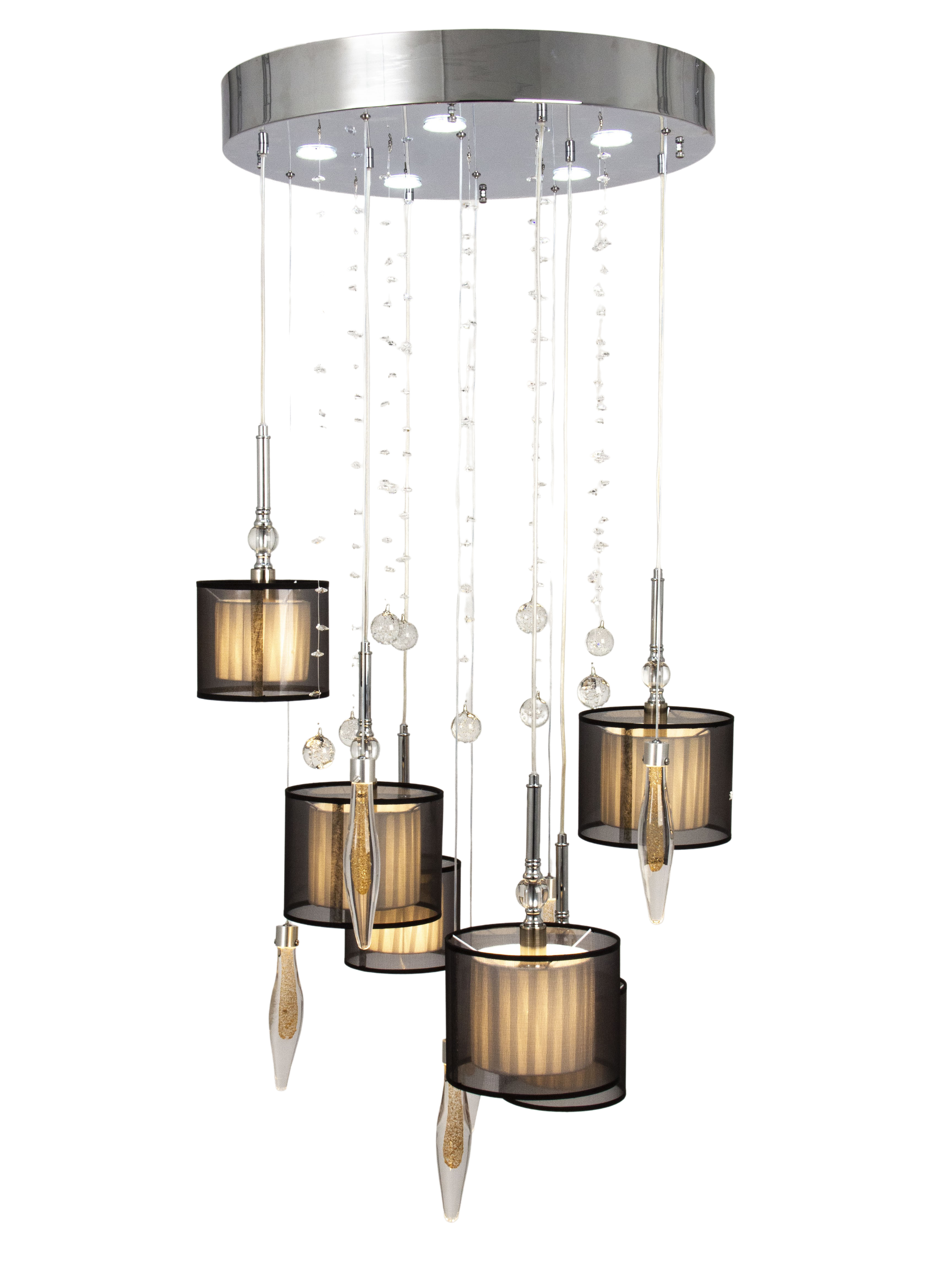 Допускается отличие страны-изготовителя, указанной в характеристиках. Линии производства могут находиться в нескольких государствах. Это не влияет на качество изготовления товара: все заводы данного бренда работают по общим стандартам, а готовые изделия проходят соответствующий контроль.Германия ЦветЦвет арматуры Хром Цвет Хром Материал арматуры Металл Материал плафона Текстиль, Пластик РазмерыВысота (мм) 800 Диаметр (мм) 600 Ширина (мм) 600 ЭлектрикаКоличество ламп (шт) 12+5 Цоколь E14, GU10 Тип лампы Светодиодная, Накаливания Мощность лампы (Вт) 40 Напряжение (В) 220 Площадь освещения 24 Дополнительная информацияСпособ крепления Планка Степень защиты (IP) IP20 Место установки на потолок Тип подвеса На тросах Количество подвесов Много подвесных элементов -