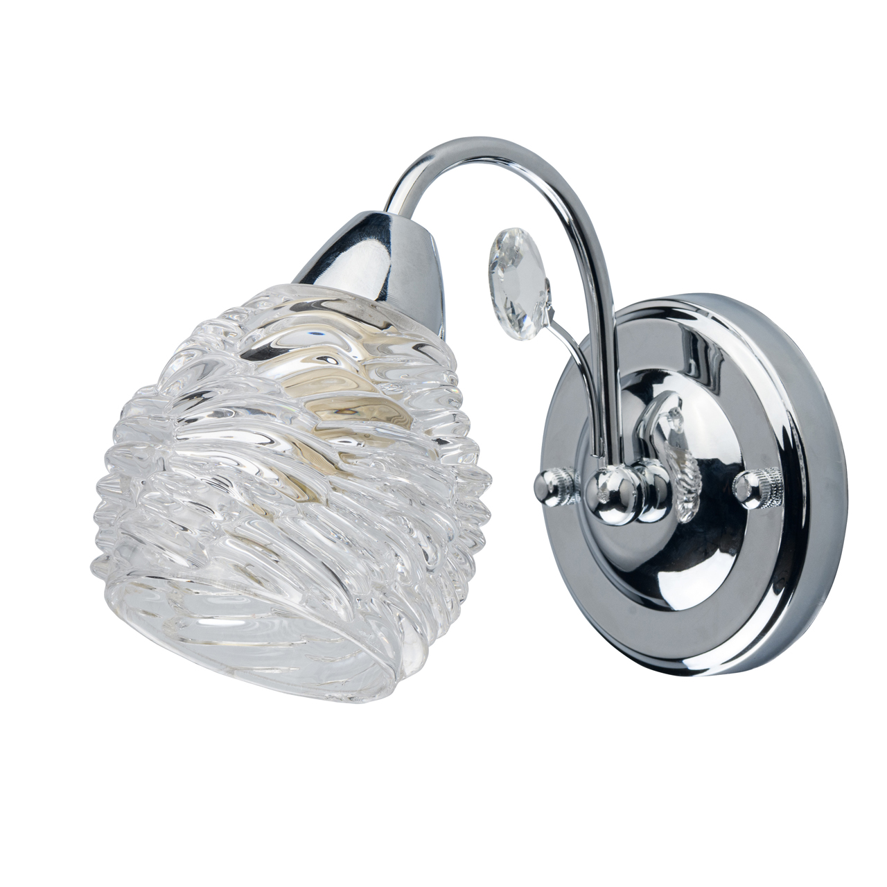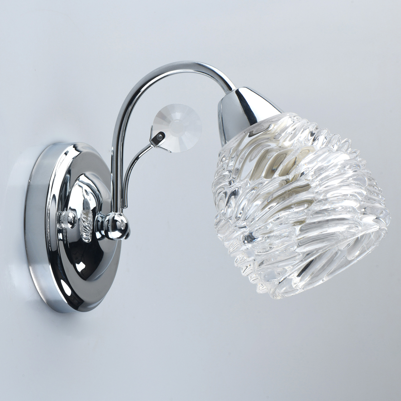 Универсальный цвет хрома основания светильника.Хрустальный декор подчеркивает утонченность модели. Резной плафон создает красивую игру света.Полная семья из бра и потолочного светильника.