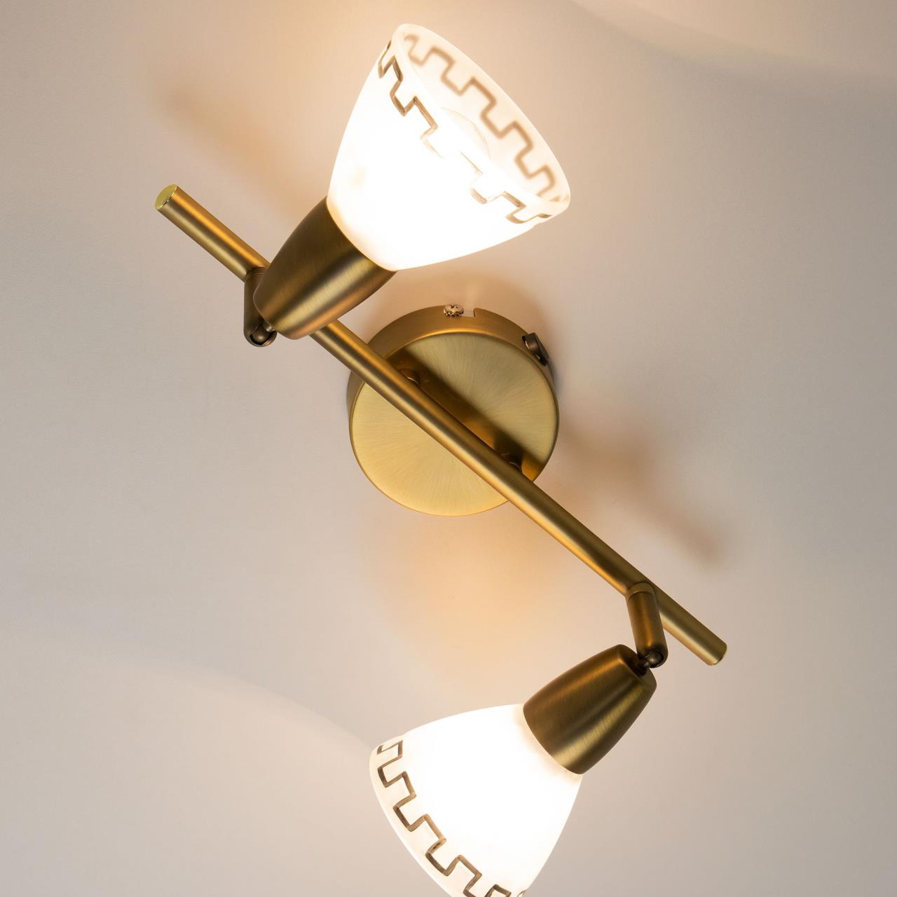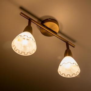 Материал и цвет арматуры: металл, Золото. Плафоны: стекло коричневое с узорами. Светильник подключается к внутренней проводке. Управление от центрального выключателя. Лампы накаливания в комплект не входят.