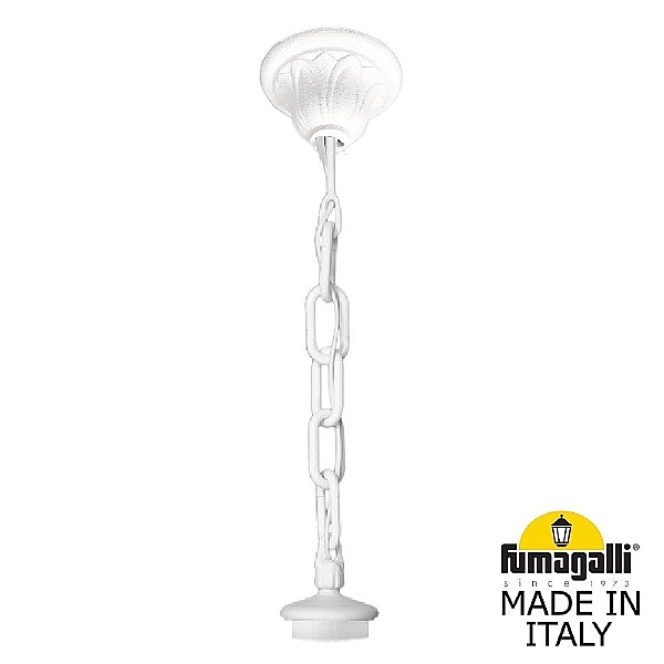 Декоративная цепочка подвес FUMAGALLI, модель SICHEM. Подвес длиной 500 мм для светильника малого и среднего размера. Классический дизайн "под литье", имитация чугунных кованых цепей позапрошлого века. В основании подвеса расположена монтажная петля, и клемма для подключения и проводов электропитания. Монтажная крючок в комплект поставки не входит. На другой стороне подвеса расположено декоративное крепление к крышке фонаря PINNACLES, с помощью которого светильник прочно и герметично соединяется с подвесом. Звенья цепи изготовлены разборными, что позволяет регулировать длину в любую сторону. Для производства используется сверхпрочный технологичный полимерный материал RESIN, который защищает поверхность от агрессивного воздействия всех атмосферных факторов (покрытие не ржавеет, не выгорает на солнце, не боится солей и реагентов). Не проводит электричество!!! Подвес и светильники не требуют заземления и относятся к 2 классу электробезопастности. Посадочный размер для фонарей равен 60мм.. Срок службы - не менее 20 лет. Температура использования от -60 до +90.