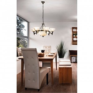 Допускается отличие страны-изготовителя, указанной в характеристиках. Линии производства могут находиться в нескольких государствах. Это не влияет на качество изготовления товара: все заводы данного бренда работают по общим стандартам, а готовые изделия проходят соответствующий контроль.Австрия Коллекция Marbella ЦветЦвет арматуры Бронза Цвет Бежевый Материал арматуры Металл Цвет плафона бежевый Материал плафона Стекло РазмерыВысота (мм) 1100 Диаметр (мм) 740 Высота минимальная (мм) 700 Ширина (мм) 740 Возможность регулировки высоты Есть ЭлектрикаКоличество ламп (шт) 9 Цоколь E14 Тип лампы Накаливания Лампочки в комплекте Нет в комплекте Возможность подключение диммера Есть Мощность лампы (Вт) 60 Общая мощность (Вт) 540 Напряжение (В) 220 Цветовая температура 2400-2800 Площадь освещения 30 Дополнительная информацияСтепень защиты (IP) IP20 Вес (Кг) 7.162 Тип подвеса На цепи -