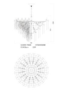 Допускается отличие страны-изготовителя, указанной в характеристиках. Линии производства могут находиться в нескольких государствах. Это не влияет на качество изготовления товара: все заводы данного бренда работают по общим стандартам, а готовые изделия проходят соответствующий контроль.Россия Коллекция Adele ЦветЦвет арматуры Белый Цвет Золото Материал арматуры Керамика Цвет плафона белый матовый Материал плафона Керамика РазмерыВысота (мм) 1000 Длина (мм) 90 Диаметр (мм) 780 ЭлектрикаКоличество ламп (шт) 21 Цоколь E14 Дополнительная информацияВес (Кг) 33 -