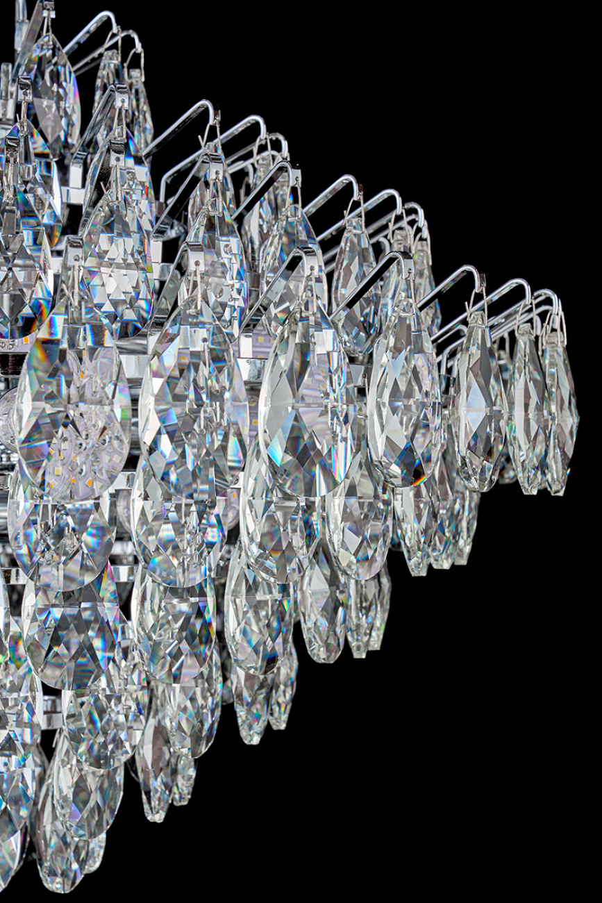 Допускается отличие страны-изготовителя, указанной в характеристиках. Линии производства могут находиться в нескольких государствах. Это не влияет на качество изготовления товара: все заводы данного бренда работают по общим стандартам, а готовые изделия проходят соответствующий контроль.Россия Коллекция Adriana ЦветЦвет арматуры Хром Цвет Хром Материал арматуры Металл гальванизированный Цвет плафона прозрачный Материал плафона Хрусталь РазмерыВысота (мм) 980 Длина (мм) 85 Диаметр (мм) 800 ЭлектрикаКоличество ламп (шт) 27 Цоколь E14 Дополнительная информацияВес (Кг) 30 -
