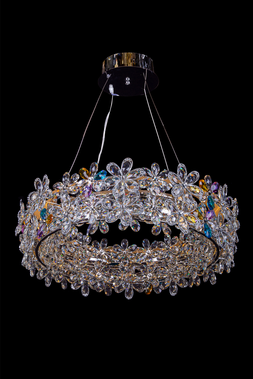 Допускается отличие страны-изготовителя, указанной в характеристиках. Линии производства могут находиться в нескольких государствах. Это не влияет на качество изготовления товара: все заводы данного бренда работают по общим стандартам, а готовые изделия проходят соответствующий контроль.Россия Коллекция Agathe ЦветЦвет арматуры Хром Цвет Хром Материал арматуры Металл гальванизированный Цвет плафона разноцветный Материал плафона Металл РазмерыВысота (мм) 1500 Длина (мм) 70 Диаметр (мм) 600 ЭлектрикаЦоколь LED Мощность лампы (Вт) 61 Световой поток 4800 Цветовая температура теплый (3000k) Дополнительная информацияВес (Кг) 5; 4; 6 6 -
