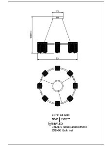 Допускается отличие страны-изготовителя, указанной в характеристиках. Линии производства могут находиться в нескольких государствах. Это не влияет на качество изготовления товара: все заводы данного бренда работают по общим стандартам, а готовые изделия проходят соответствующий контроль.Россия Коллекция Cascade ЦветЦвет арматуры Серый Цвет Золото Материал арматуры Металл гальванизированный Цвет плафона прозрачный Материал плафона Акрил РазмерыВысота (мм) 1500 Длина (мм) 79 Диаметр (мм) 720 ЭлектрикаЦоколь LED Мощность лампы (Вт) 54 Световой поток 5940 Цветовая температура нейтральный (4000k) Дополнительная информацияВес (Кг) 9.5 -