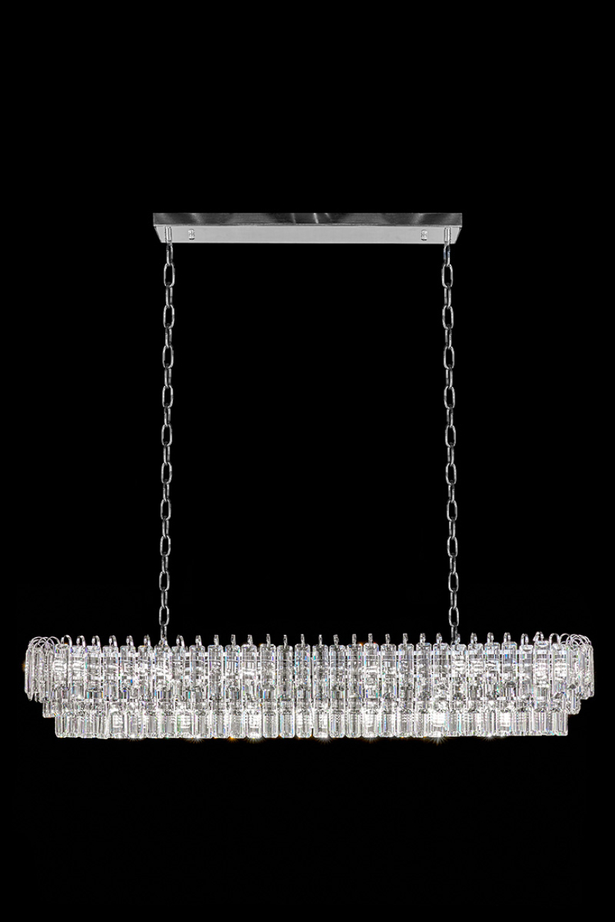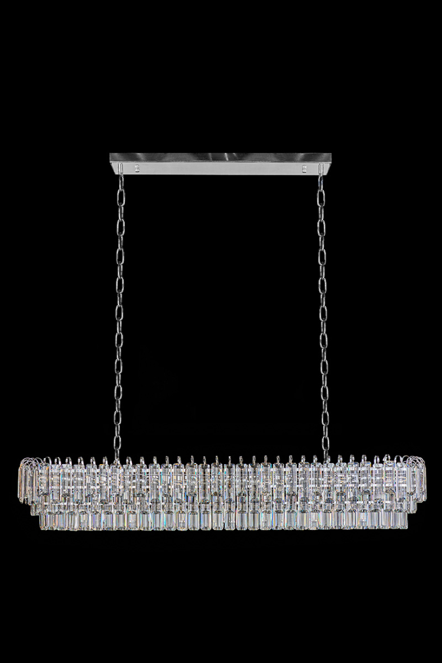 Допускается отличие страны-изготовителя, указанной в характеристиках. Линии производства могут находиться в нескольких государствах. Это не влияет на качество изготовления товара: все заводы данного бренда работают по общим стандартам, а готовые изделия проходят соответствующий контроль.Россия Коллекция Catherine ЦветЦвет арматуры Хром Цвет Хром Материал арматуры Металл гальванизированный Цвет плафона прозрачный Материал плафона Хрусталь РазмерыВысота (мм) 1440 Длина (мм) 120 Ширина (мм) 300 ЭлектрикаКоличество ламп (шт) 21 Цоколь E14 Дополнительная информацияВес (Кг) 7; 5 15 -