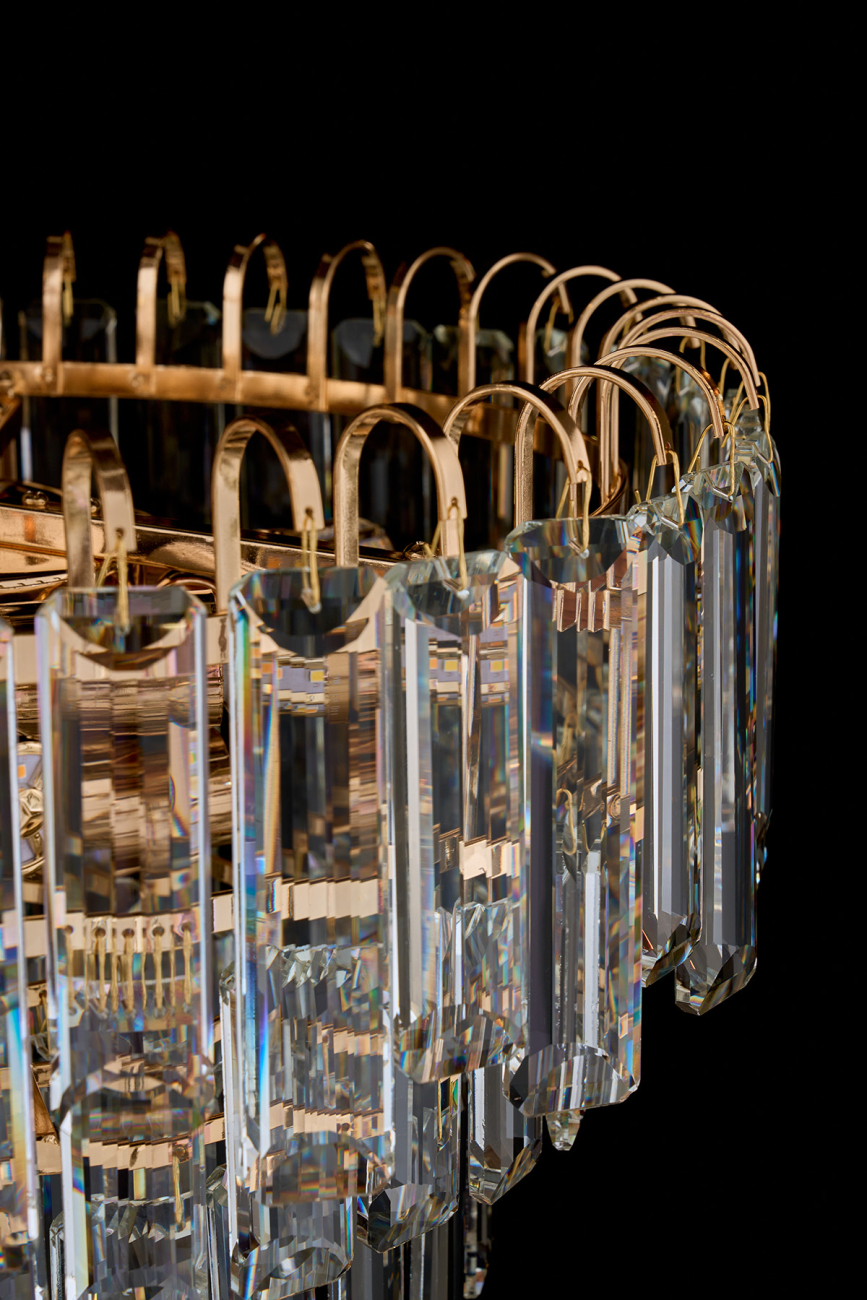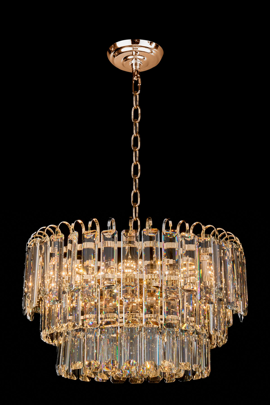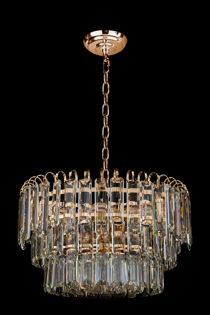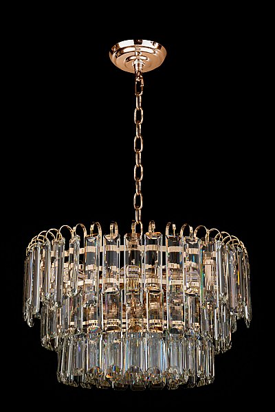 Допускается отличие страны-изготовителя, указанной в характеристиках. Линии производства могут находиться в нескольких государствах. Это не влияет на качество изготовления товара: все заводы данного бренда работают по общим стандартам, а готовые изделия проходят соответствующий контроль.Россия Коллекция Catherine ЦветЦвет арматуры Золото Цвет Золото Материал арматуры Металл гальванизированный Цвет плафона прозрачный Материал плафона Хрусталь РазмерыВысота (мм) 1450 Длина (мм) 41 Диаметр (мм) 400 ЭлектрикаКоличество ламп (шт) 8 Цоколь E14 Дополнительная информацияВес (Кг) 7 -