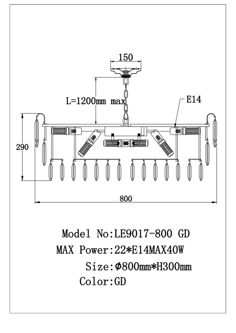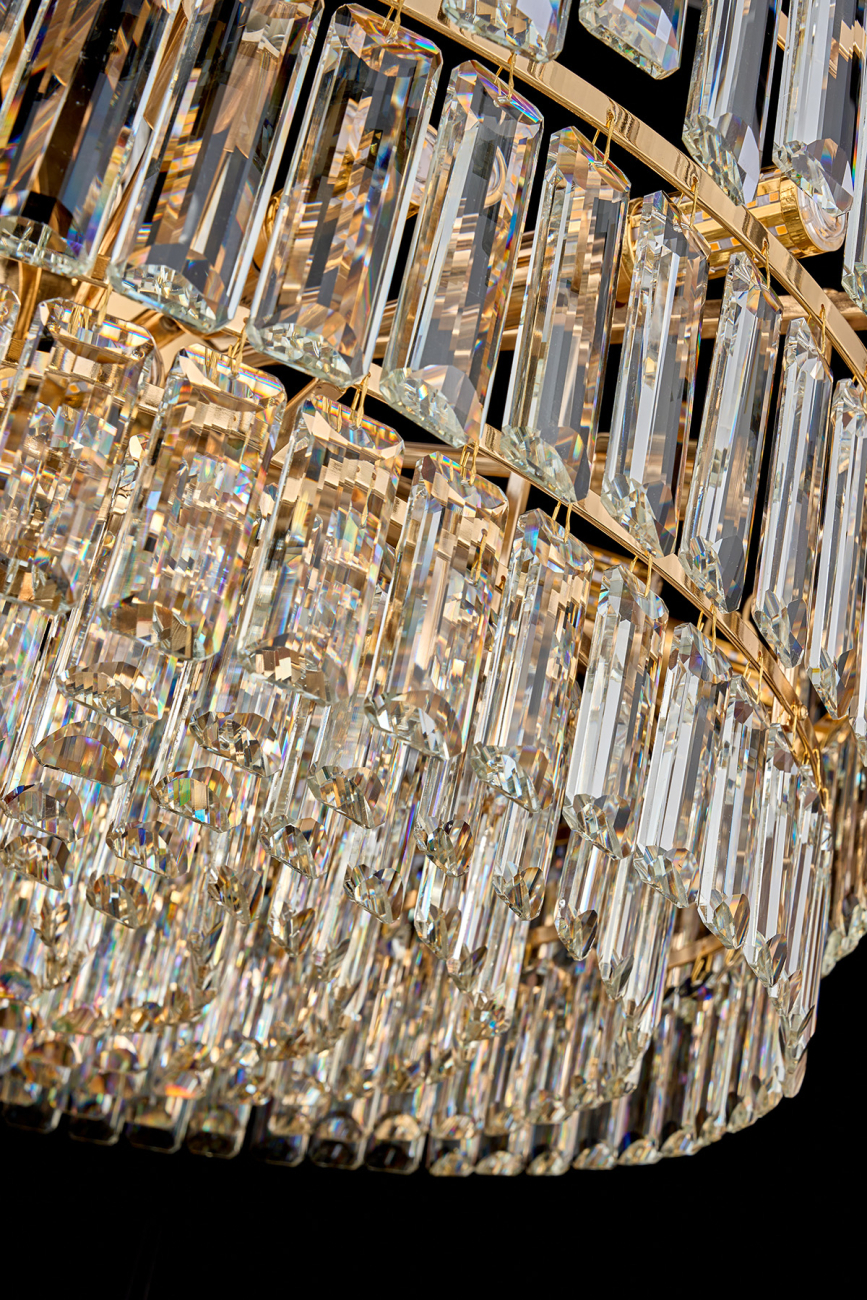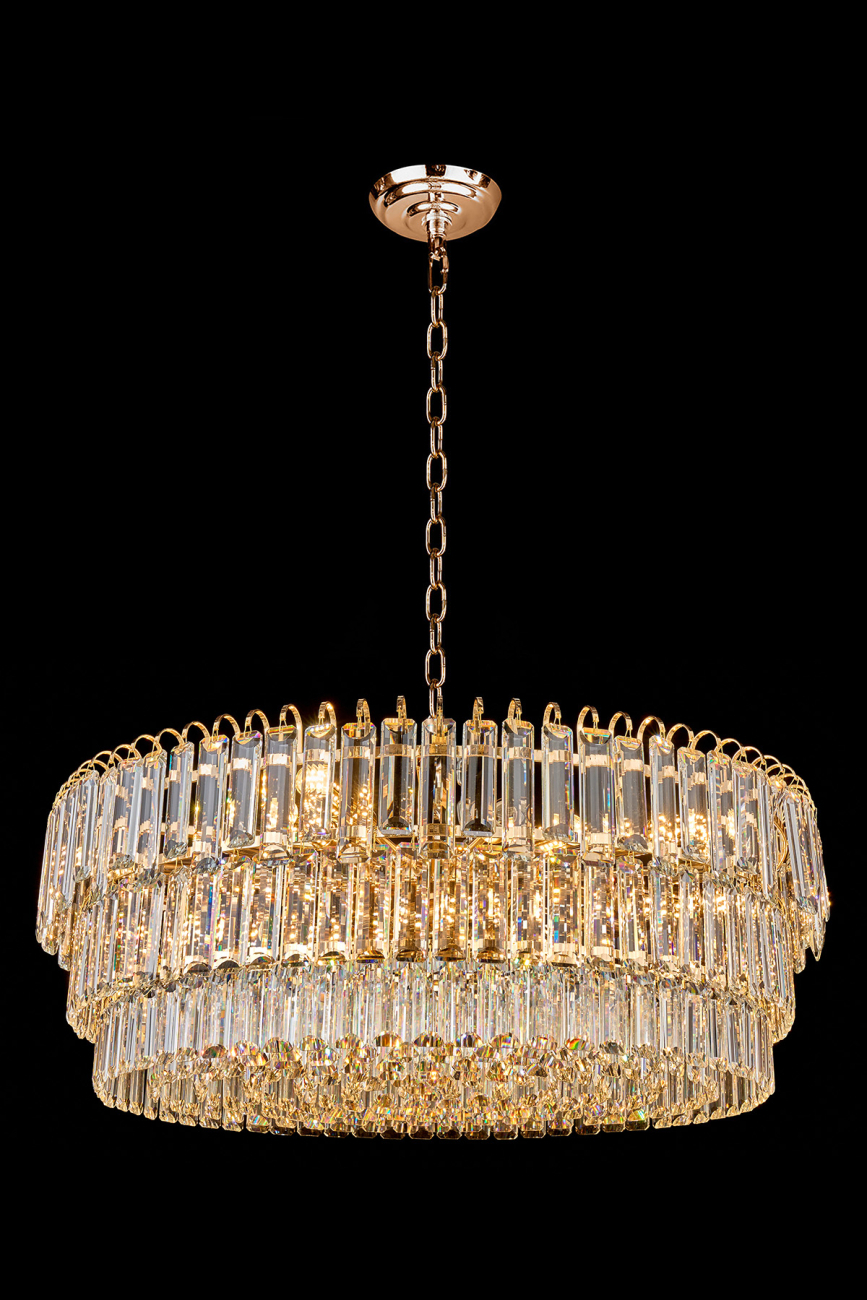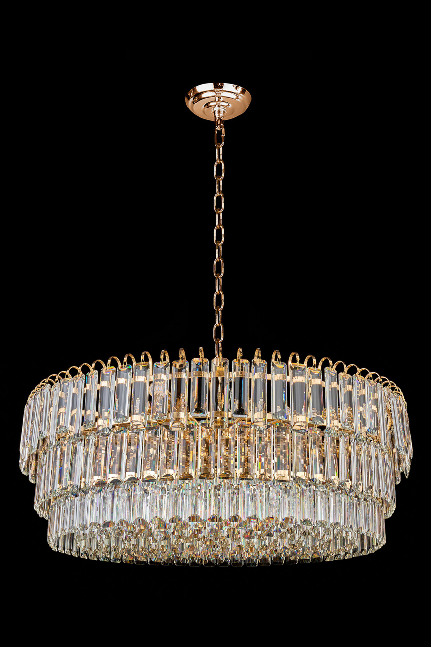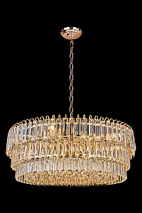 Допускается отличие страны-изготовителя, указанной в характеристиках. Линии производства могут находиться в нескольких государствах. Это не влияет на качество изготовления товара: все заводы данного бренда работают по общим стандартам, а готовые изделия проходят соответствующий контроль.Россия Коллекция Catherine ЦветЦвет арматуры Золото Цвет Золото Материал арматуры Металл гальванизированный Цвет плафона прозрачный Материал плафона Хрусталь РазмерыВысота (мм) 1490 Длина (мм) 82 Диаметр (мм) 800 ЭлектрикаКоличество ламп (шт) 22 Цоколь E14 Дополнительная информацияВес (Кг) 8 16 -