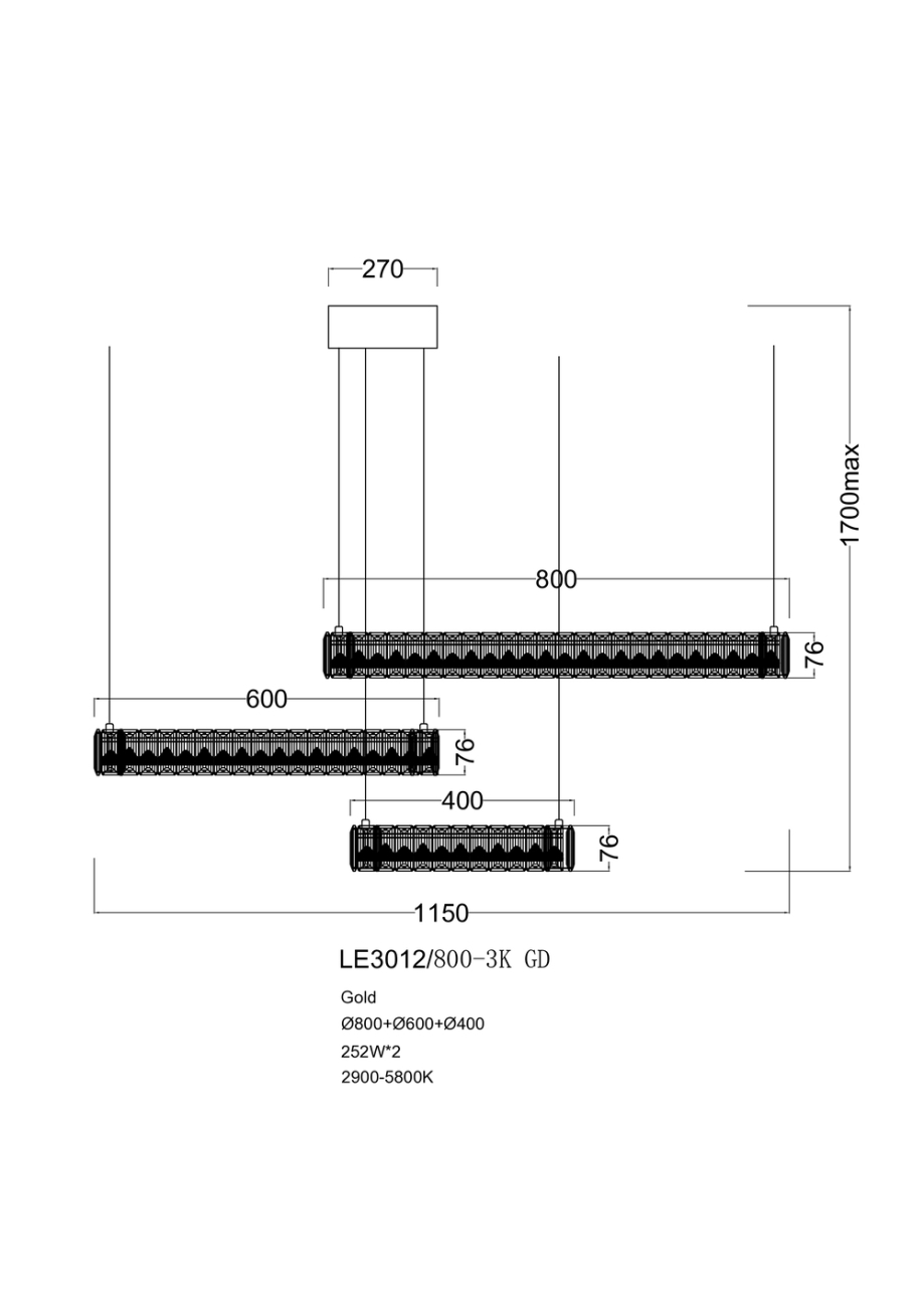 Допускается отличие страны-изготовителя, указанной в характеристиках. Линии производства могут находиться в нескольких государствах. Это не влияет на качество изготовления товара: все заводы данного бренда работают по общим стандартам, а готовые изделия проходят соответствующий контроль.Россия Коллекция Delaina ЦветЦвет арматуры Хром Цвет Хром Материал арматуры Металл гальванизированный Цвет плафона прозрачный Материал плафона Хрусталь РазмерыВысота (мм) 1700 Длина (мм) 87 Диаметр (мм) 800 ЭлектрикаЦоколь LED Мощность лампы (Вт) 2*252 Световой поток 21776 Цветовая температура нейтральный (4000k) Дополнительная информацияВес (Кг) 21 -