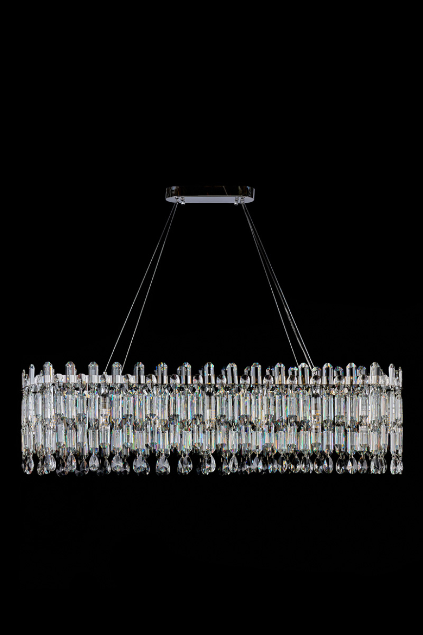 Допускается отличие страны-изготовителя, указанной в характеристиках. Линии производства могут находиться в нескольких государствах. Это не влияет на качество изготовления товара: все заводы данного бренда работают по общим стандартам, а готовые изделия проходят соответствующий контроль.Россия Коллекция Elien ЦветЦвет арматуры Хром Цвет Хром Материал арматуры Металл гальванизированный Цвет плафона прозрачный Материал плафона Хрусталь РазмерыВысота (мм) 1515 Длина (мм) 120 Ширина (мм) 300 ЭлектрикаКоличество ламп (шт) 21 Цоколь E14 Дополнительная информацияВес (Кг) 23.7 -
