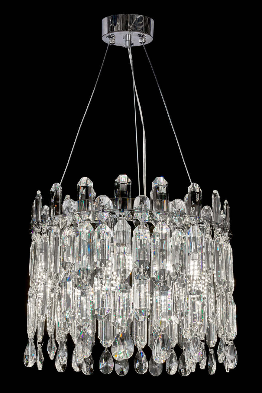 Допускается отличие страны-изготовителя, указанной в характеристиках. Линии производства могут находиться в нескольких государствах. Это не влияет на качество изготовления товара: все заводы данного бренда работают по общим стандартам, а готовые изделия проходят соответствующий контроль.Россия Коллекция Elien ЦветЦвет арматуры Хром Цвет Хром Материал арматуры Металл гальванизированный Цвет плафона прозрачный Материал плафона Хрусталь РазмерыВысота (мм) 1515 Длина (мм) 45 Диаметр (мм) 400 ЭлектрикаКоличество ламп (шт) 6 Цоколь E14 Дополнительная информацияВес (Кг) 9.2 -