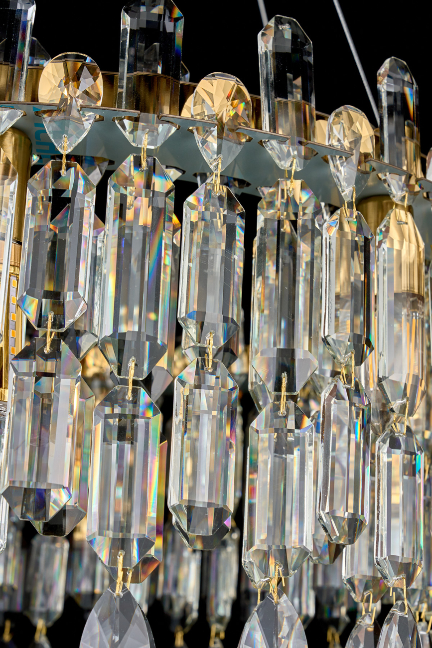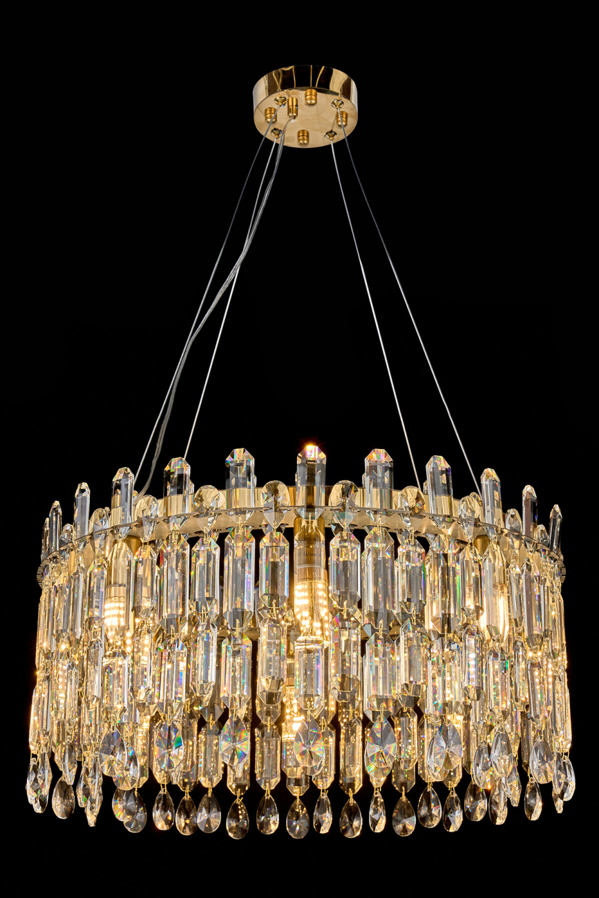 Допускается отличие страны-изготовителя, указанной в характеристиках. Линии производства могут находиться в нескольких государствах. Это не влияет на качество изготовления товара: все заводы данного бренда работают по общим стандартам, а готовые изделия проходят соответствующий контроль.Россия Коллекция Elien ЦветЦвет арматуры Золото Цвет Золото Материал арматуры Металл гальванизированный Цвет плафона прозрачный Материал плафона Хрусталь РазмерыВысота (мм) 1515 Длина (мм) 65 Диаметр (мм) 600 ЭлектрикаКоличество ламп (шт) 8 Цоколь E14 Дополнительная информацияВес (Кг) 14.6 -