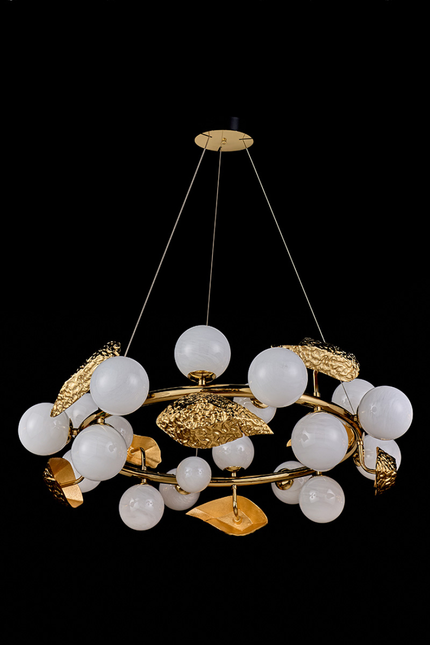 Допускается отличие страны-изготовителя, указанной в характеристиках. Линии производства могут находиться в нескольких государствах. Это не влияет на качество изготовления товара: все заводы данного бренда работают по общим стандартам, а готовые изделия проходят соответствующий контроль.Россия Коллекция Emilie ЦветЦвет арматуры Золото Цвет Золото Материал арматуры Металл Цвет плафона матовый Материал плафона Хрусталь РазмерыВысота (мм) 1200 Длина (мм) 80 Диаметр (мм) 800 ЭлектрикаКоличество ламп (шт) 20 Цоколь G9 Дополнительная информацияВес (Кг) 10.09 -