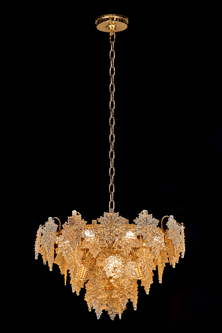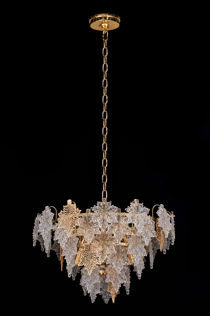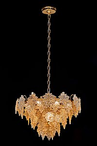 Допускается отличие страны-изготовителя, указанной в характеристиках. Линии производства могут находиться в нескольких государствах. Это не влияет на качество изготовления товара: все заводы данного бренда работают по общим стандартам, а готовые изделия проходят соответствующий контроль.Россия Коллекция Erable ЦветЦвет арматуры Золото Цвет Золото Материал арматуры Металл гальванизированный Цвет плафона золото Материал плафона Металл РазмерыВысота (мм) 1180 Длина (мм) 65 Диаметр (мм) 600 ЭлектрикаКоличество ламп (шт) 12 Цоколь E14 Дополнительная информацияВес (Кг) 10 -
